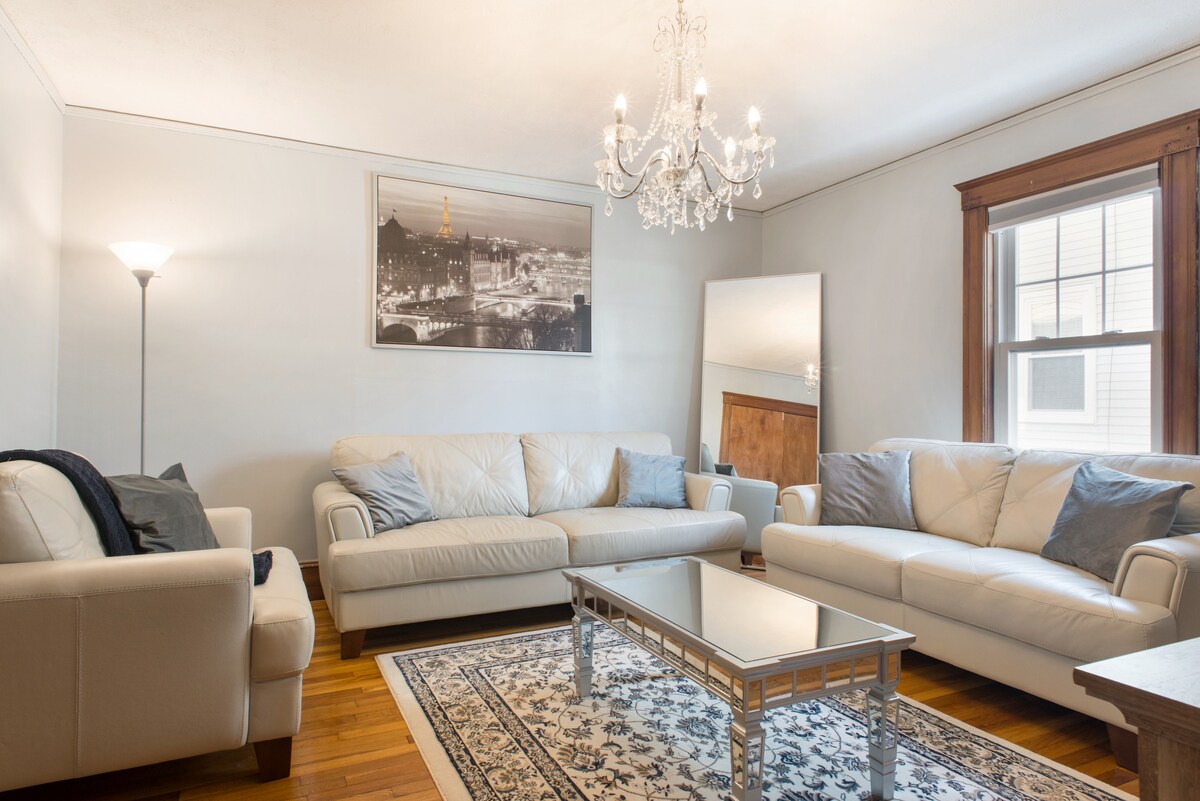 - "The house is located in a great neighbourhood close to all amenities . The owners were helpful and prompt with check in instructions. I would definitely recommend this property" - "Great apartment outside the bustle of downtown. Rare to have a three bedroom two bathroom unit" - "There was a small group of us girls having a weekend away and we could not have been happier with our rental! It was the perfect size and the host/s were more than accommodating. We would absolutely rent here again / recommend to friends & family. Neighborhood was quiet and lovely and only a short drive to downtown Boston!"
