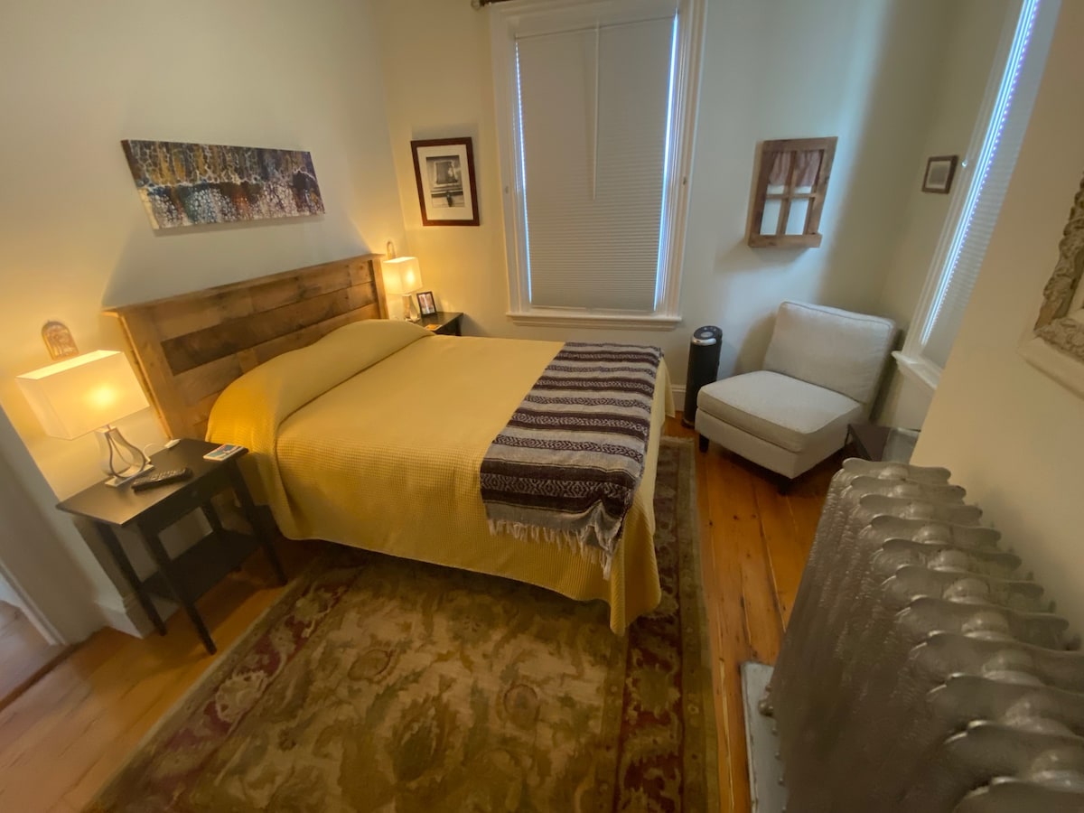 The suite is the complete second floor of a single family home that has been separated with it's own entrance. It has two comfortable bedrooms and a private full bath. There’s a microwave, mini-fridge, coffee/tea, but no kitchen. For your convenience, there’s keypad access at your private entrance, AC/heat at your control, ceiling fans, fast wifi at dedicated desks, iron & ironing board, air purifier, steam humidifier. Roughly two blocks to bus, six blocks to train. PLEASE NOTE: The suite is on the second floor accessed by a steep staircase. Please be careful.
