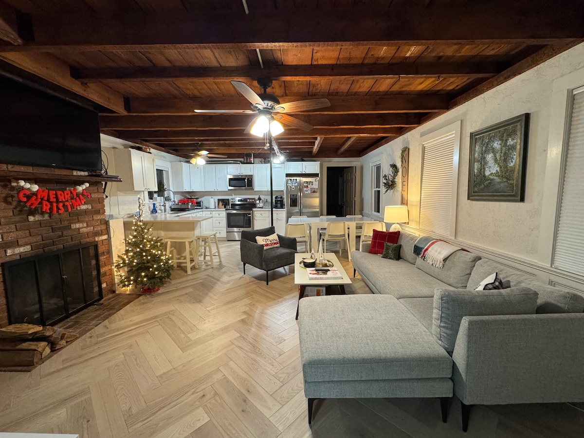RENOVATED NEWLY!NEW PHOTOS ARE ON THE WAY!! With exposed wood beams & a brick fireplace for charm, this lovely, quiet two-bedroom home is furnished with all the conveniences you will need for your Salem vacation. Fully equipped with linens,cookware,cutlery, and a washer/dryer inside the apartment. Wifi, flat-screen TV, electric/heat/AC.Exclusive to this unit is a private deck in the back. One vehicle parking space offstreet. Excellent access to Boston commuter rail AND historic Salem attractions
