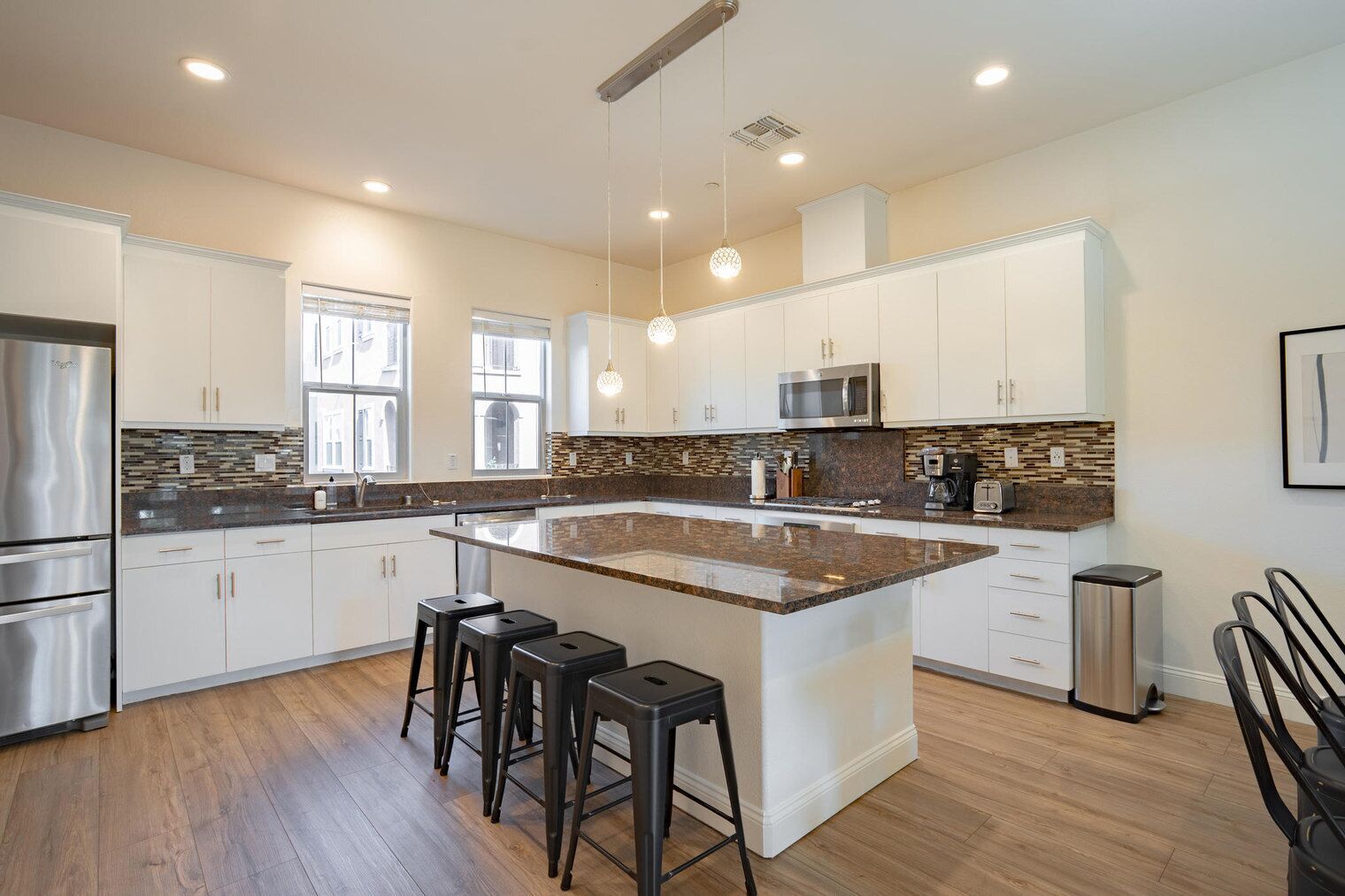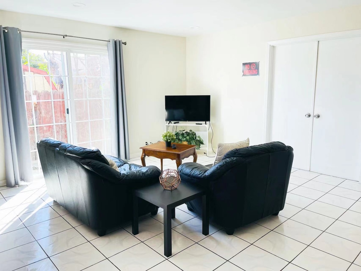 The home is new remodeled in 2021, over 1500 sq ft, smart home features and modern design. Full functional open Kitchen, Living room, a large dining table to seat everyone and a huge TV for you to enjoy with Roku. Washer and Dryer are available in the garage. High-speed wifi (Over 400MB).
