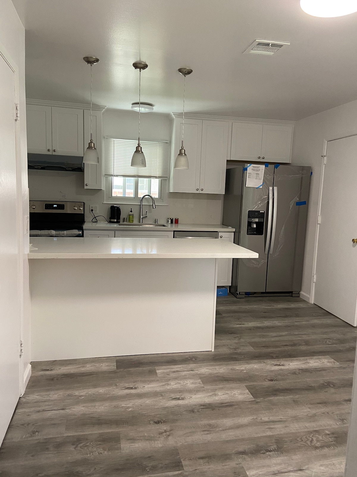 Stay in a newly built (2023) private, one floor unit with contemporary kitchen, hardwood floorings throughout. 2BR/1 Full Bath and 2 queen beds, designated workspace, fully equipped kitchen, with in-unit laundry. Each bedroom has its own AC unit and ceiling fan. Free Netflix, Disney+, and Amazon Prime Video, Hulu via 65" TV to complement your stay. 180 degree TV mount for viewing from every angle. The house is on a 9,000 feet lot with a duplex in front, this unit in the far back which provides additional privacy. Everything you need in a 5-mile radius such as Shopping Malls, Target, Grocery Store, Park, Library, and much more!