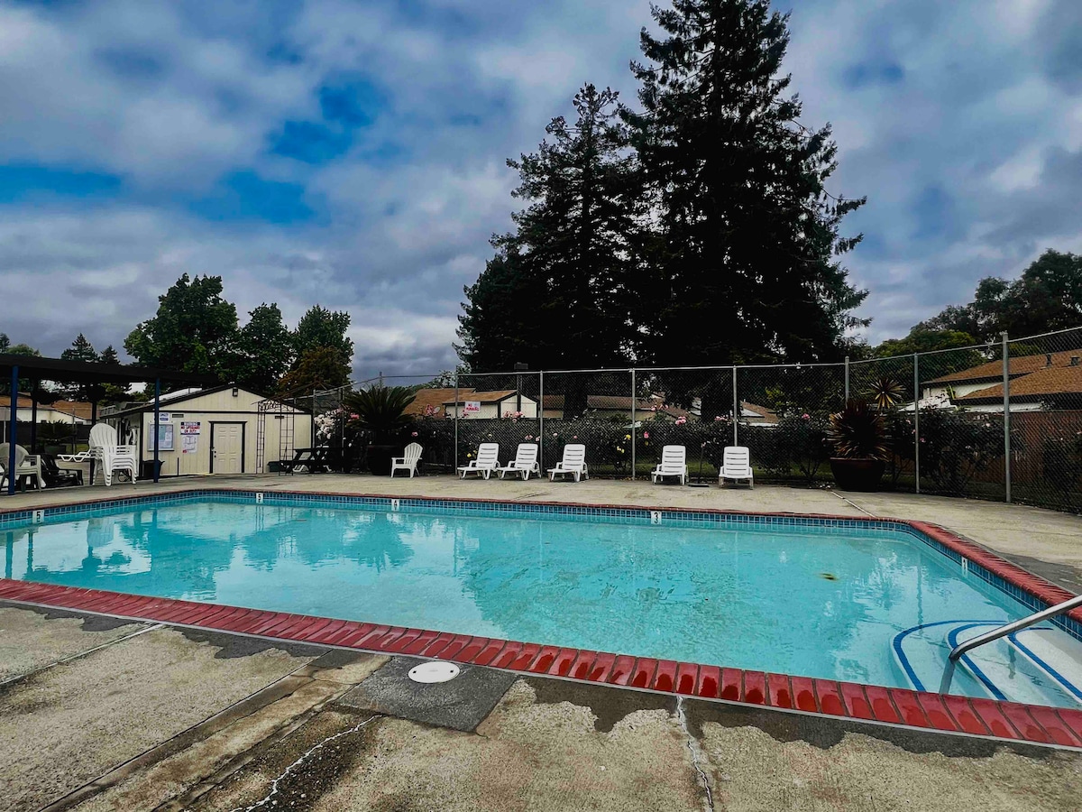 If you’re looking for something to do on your own, there is no shortage of possibilities with this convenient location. We are across the street from a grocery store and the cheapest gas in town and a mere 3 minute drive from every major freeway in the area. It’s a 5 minute walk to downtown Santa Rosa, which offers food, shopping, and movies as well as the infamous Russian River brewery.