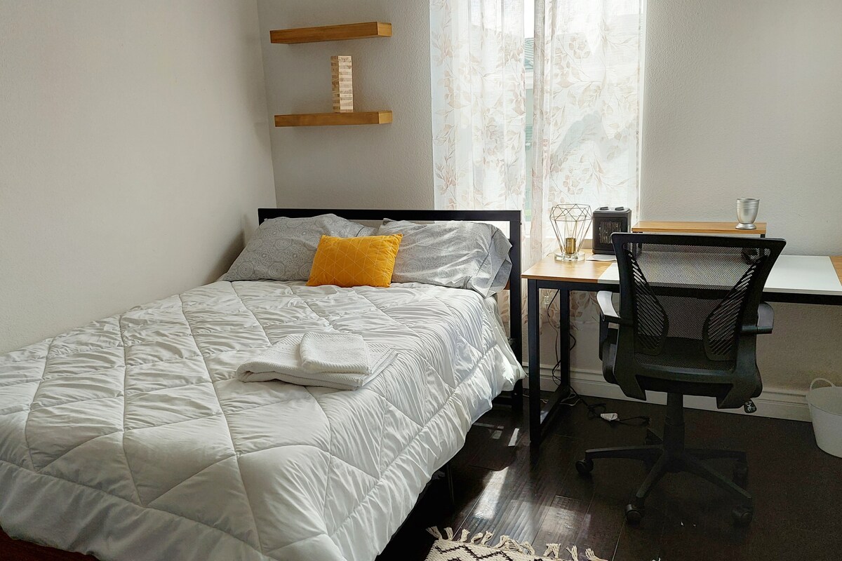 Discover our delightful 1-bedroom retreat, just blocks from downtown Santa Rosa! Perfect for solo travelers, this historic 1905 Victorian effortlessly blends timeless character with modern comforts. Enjoy your private sanctuary complete with a cozy queen bed, handy desk, and secure lock, while sharing vibrant common areas with six awesome housemates.