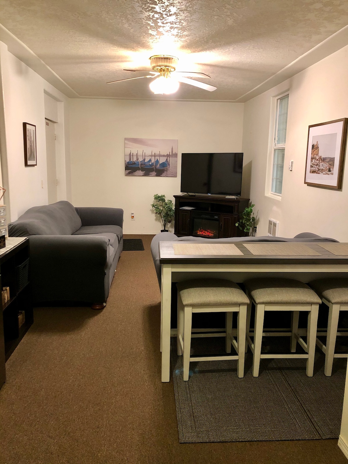 Our dedicated office area is ideal for both work and gaming, complete with a monitor, mouse, and keyboard—just bring your computer. Unwind in the living room with a Chromecast, perfect for streaming your favorite shows. The modern kitchen is fully equipped with everything you need, including a coffee maker, ice maker, fridge, oven, microwave, and more!