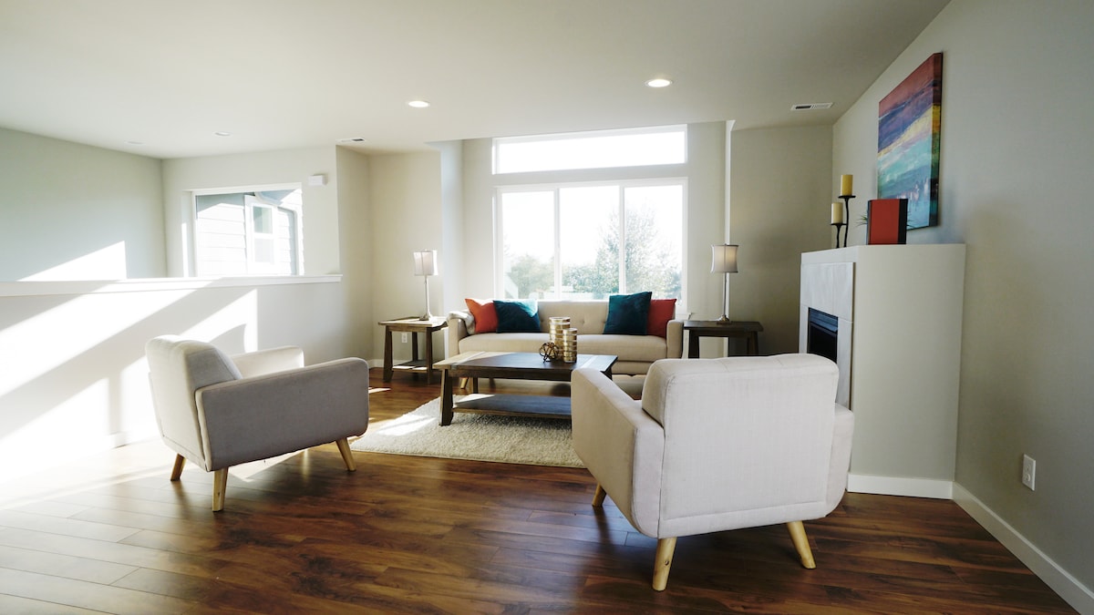 Relax in a plush king-sized bed, a queen-sized bed, and a king size pull out sofa at this inviting private townhome, conveniently located minutes from Seattle-Tacoma International Airport and downtown Seattle. Ideal for airport layovers or adventures in the Pacific Northwest, the space is just steps from the terminal and light rail connections.