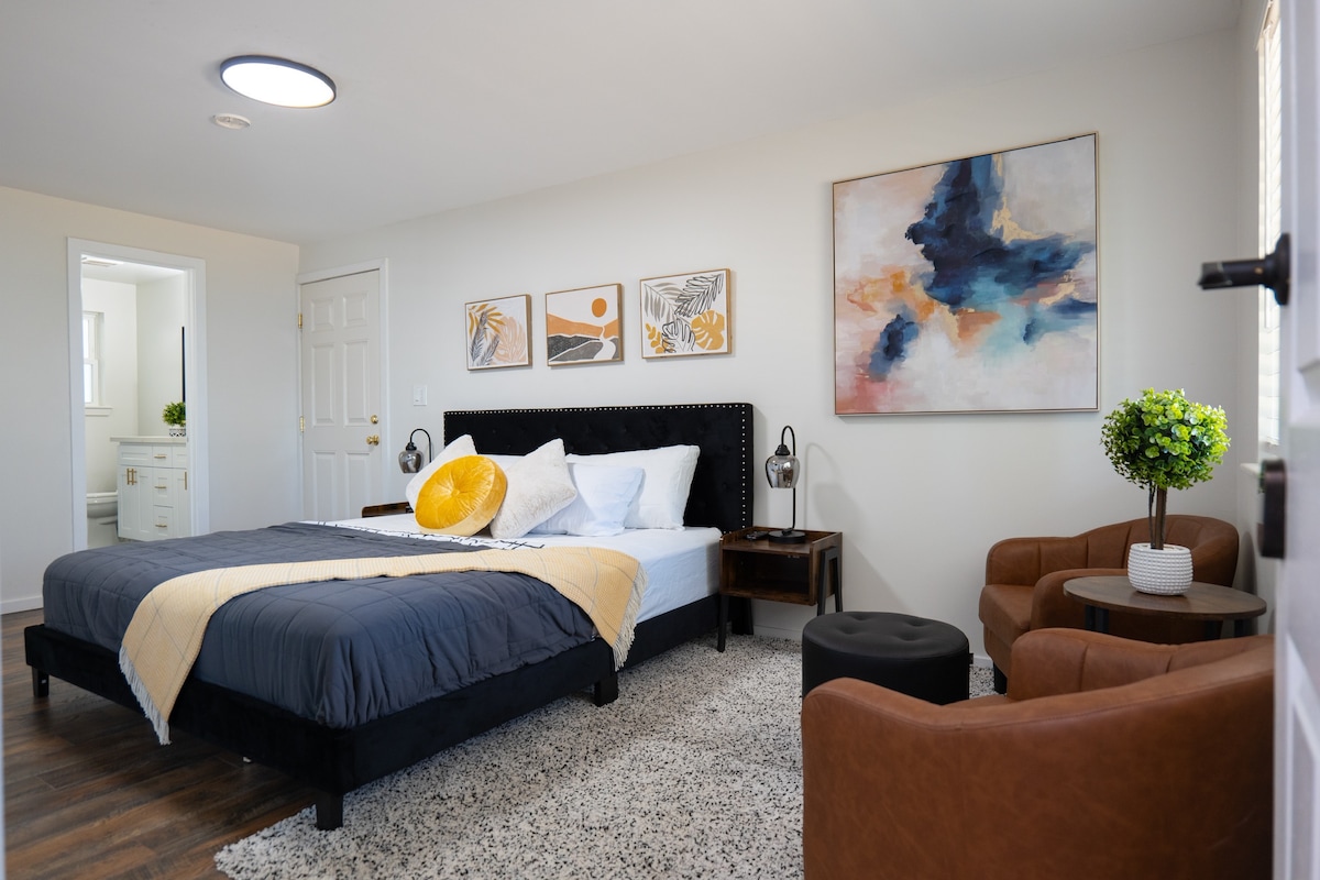 Kick back in this cozy suite while you wait for your flight. Have your own private space and full bath, with private entry.