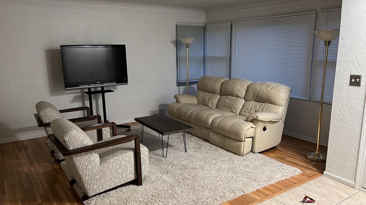 This fully-complemented all new apartment (attached to my home) will provide you with all of the amenities of your own home with WiFi, two Smart T.V.'s, Cable. In addition, there is a handicap access for those guest with physical challenges, a fenced yard with plenty of private parking, an outside fire pit to relax.
