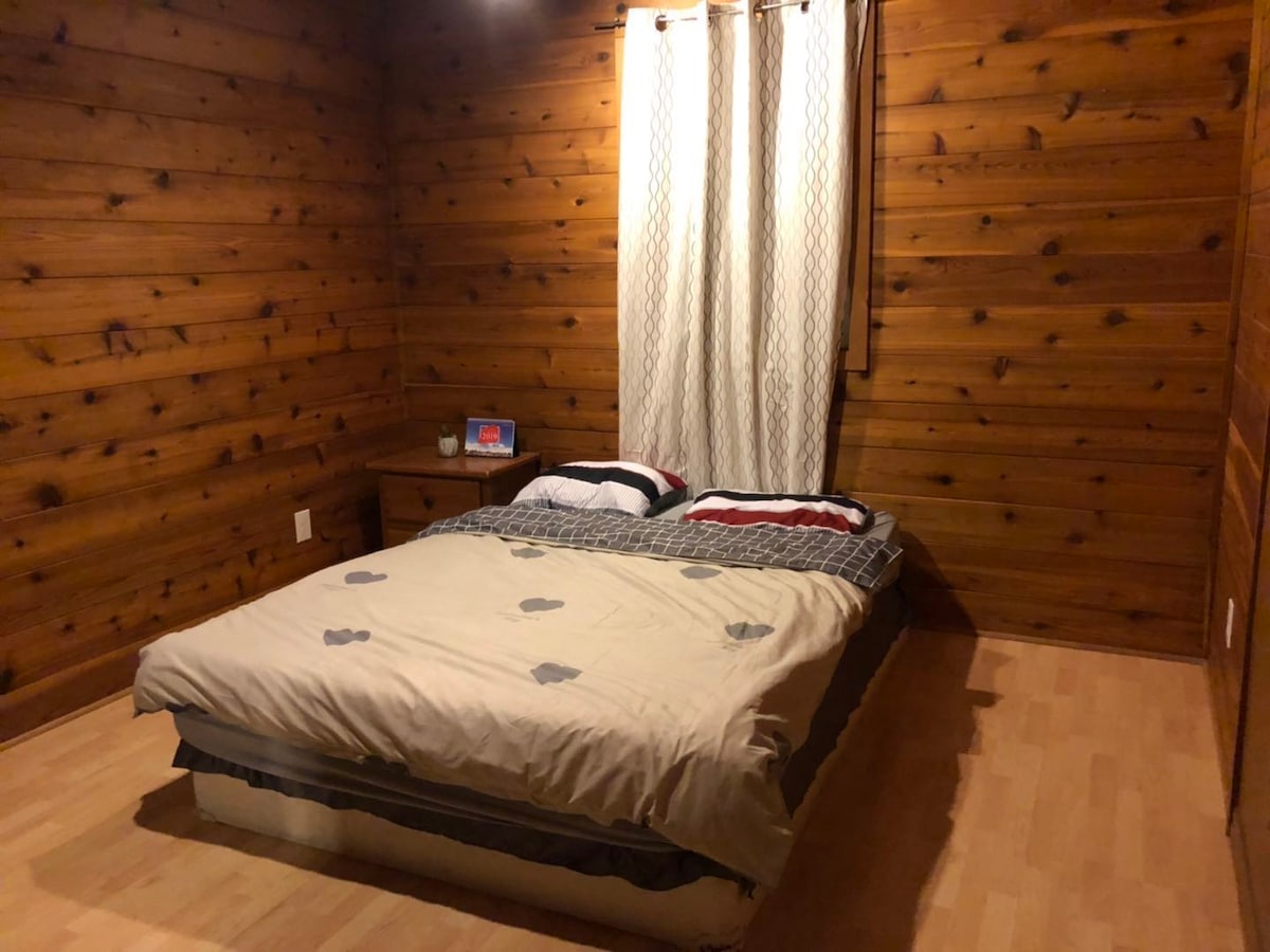 This cozy studio features a comfortable queen bed, perfect for restful nights. A versatile futon couch offers additional seating and can easily convert into a twin size bed for extra guests. For added convenience, a queen size air mattress is available upon request. The studio also boasts a full kitchen, equipped for all your cooking needs, and a private bathroom for your comfort and privacy. The open layout creates a warm and inviting atmosphere, making it ideal for relaxation or entertaining. Enjoy all the comforts of home in this charming space!