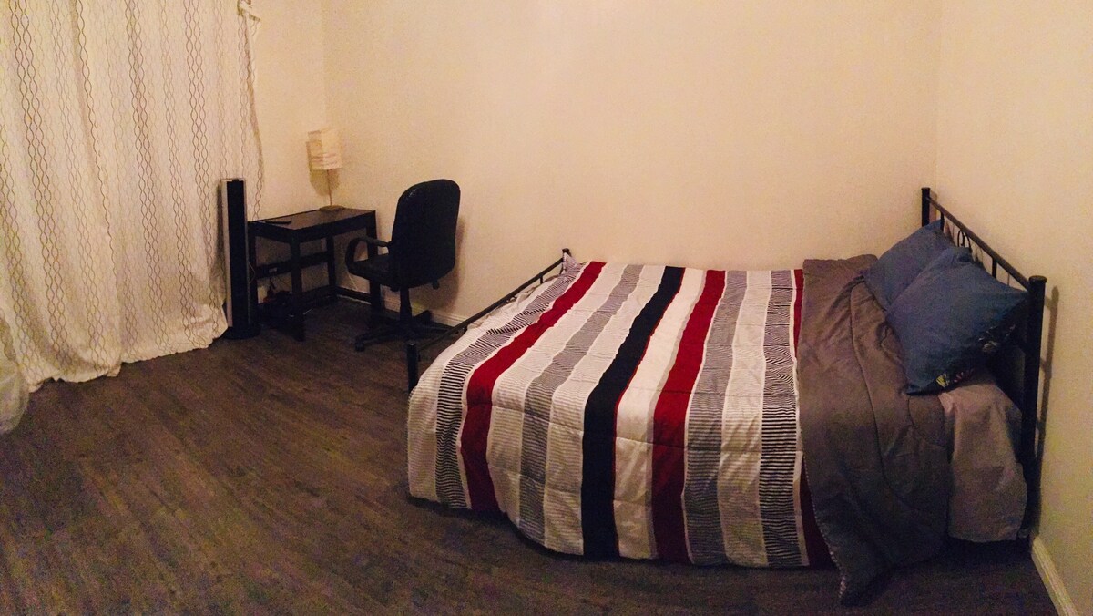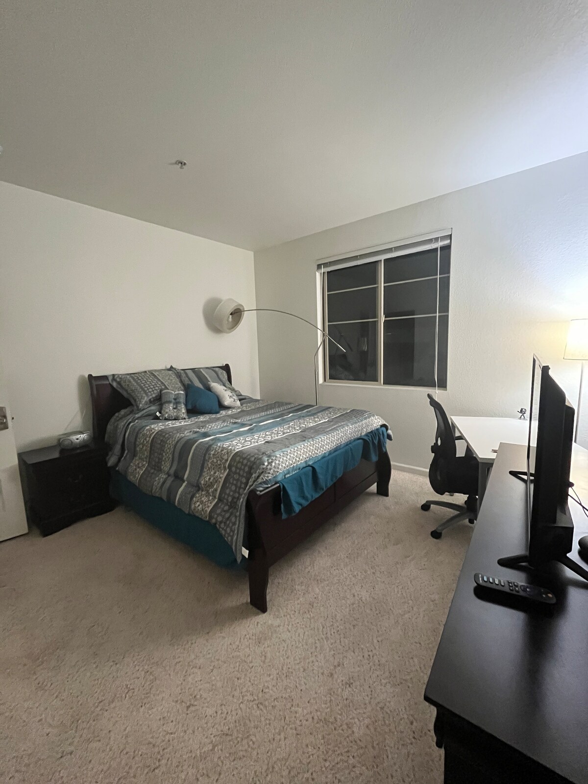 King bed+ private bathroom, FAST WIFI, 86”TV, desk, walk in closet, comforter and pillows.