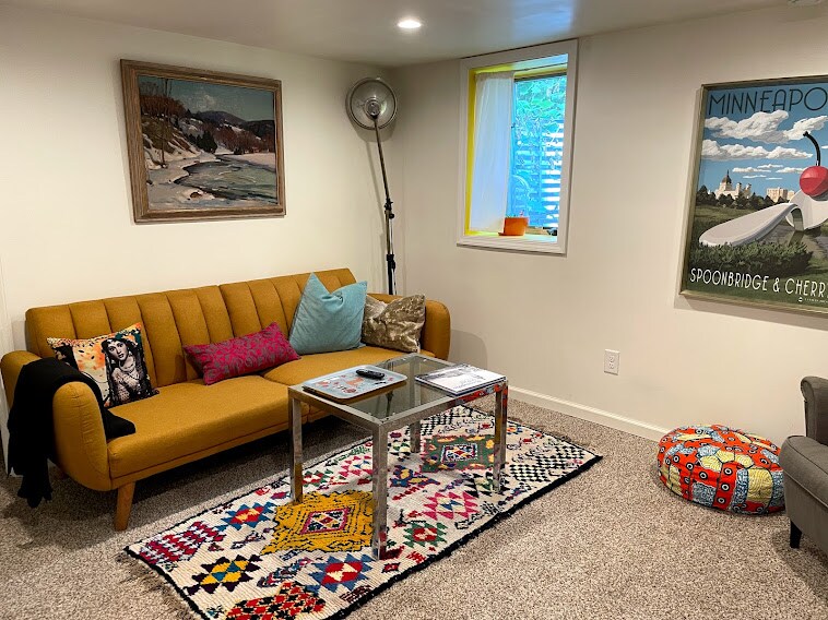 Welcome to a freshly renovated one-bedroom private guest suite in the convenient and safe Seward neighborhood, just 2 blocks from the scenic Mississippi River parkway. Keypad entry to lower level of our charming bungalow. Enjoy a fully-stocked kitchenette, brand new bathroom, cozy living area with 50" Roku TV, and bedroom with a super comfy queen bed. Minutes from Downtown, the U of M, coffee shops, and the Seward Coop grocery. On-site laundry, ample street parking and a bus stop right outside.