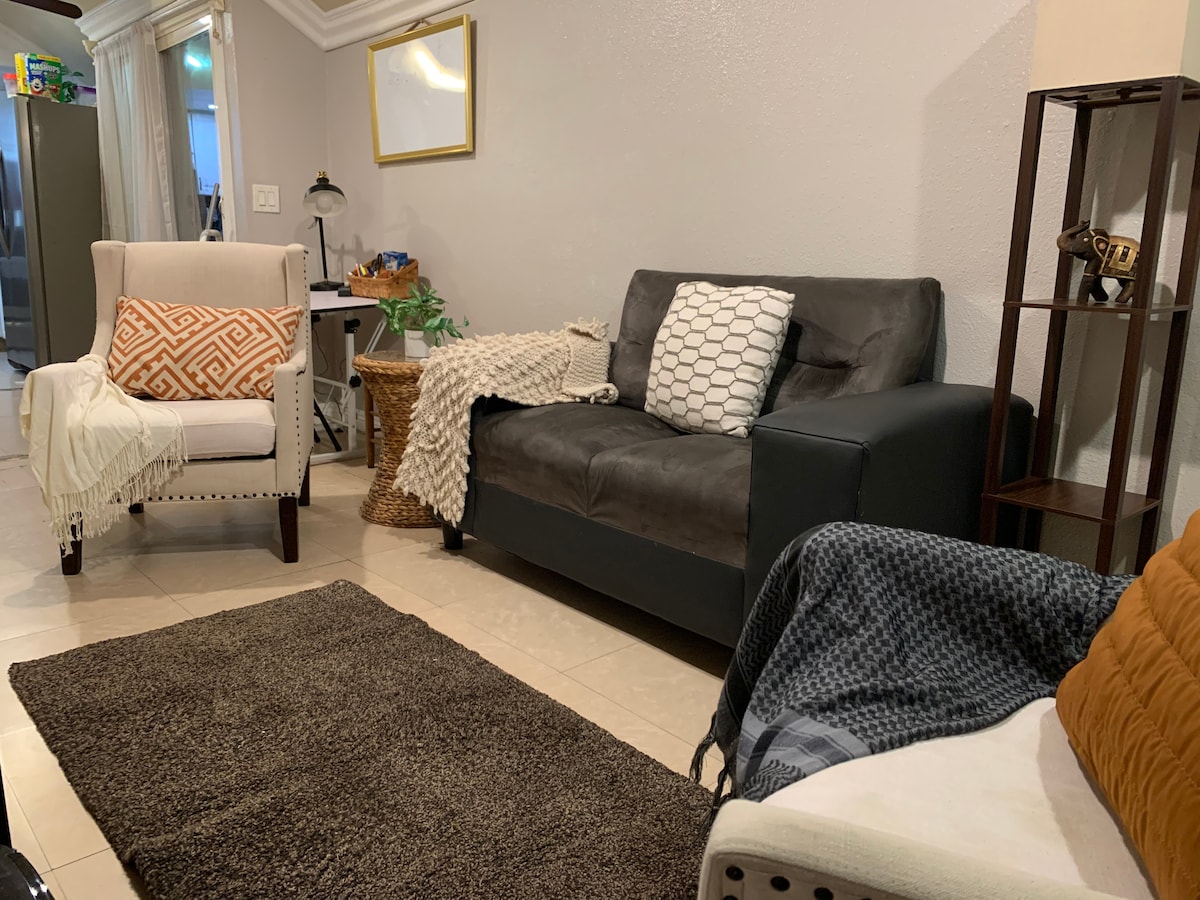 57inch Panasonic Smart TV where you can access Youtube or log on to your Netflix account. New Washer and Dryer free to use. There is a queen and full bed as well as a pullout sofa bed (W/twin mattress & newly added foam mattress toper). Home is about 700sq ft. of comfortable space. This home includes top of the line stainless steel appliances. Tile flooring throughout, mirrored closets, Iron board , Iron, starch and sewing kit if you are in a bind. Kitchen is equipped with Keurig coffee maker, microwave, and toaster along with essential cookware. Fully stocked kitchen to cook for a weekend or a month. Portable heaters and fans as well as ceiling fans. Is this a work/study stay in Downtown? There is a dedicated workspace for Laptop with essential office supplies. Patio is free to use at your convenience. Note: it is a passage way to the tenant to other house inside the property.