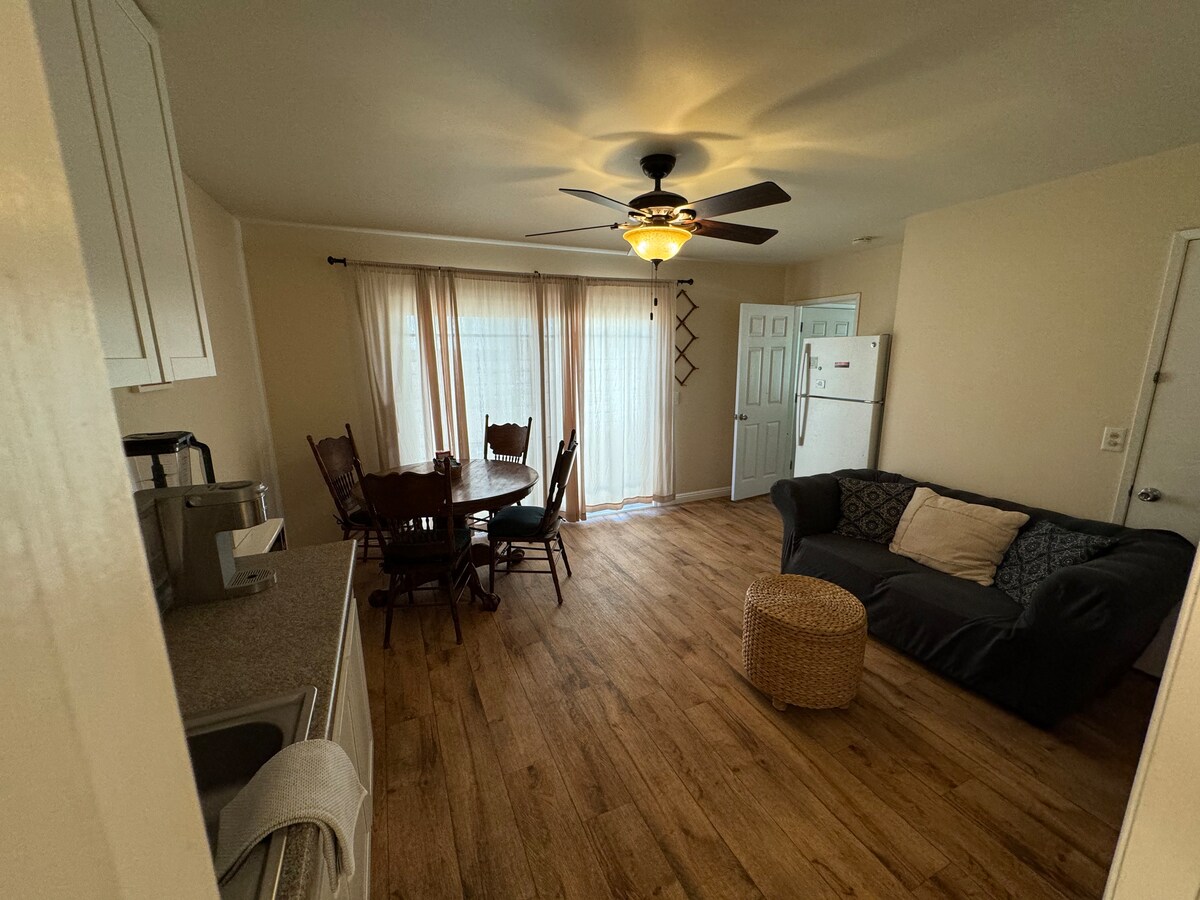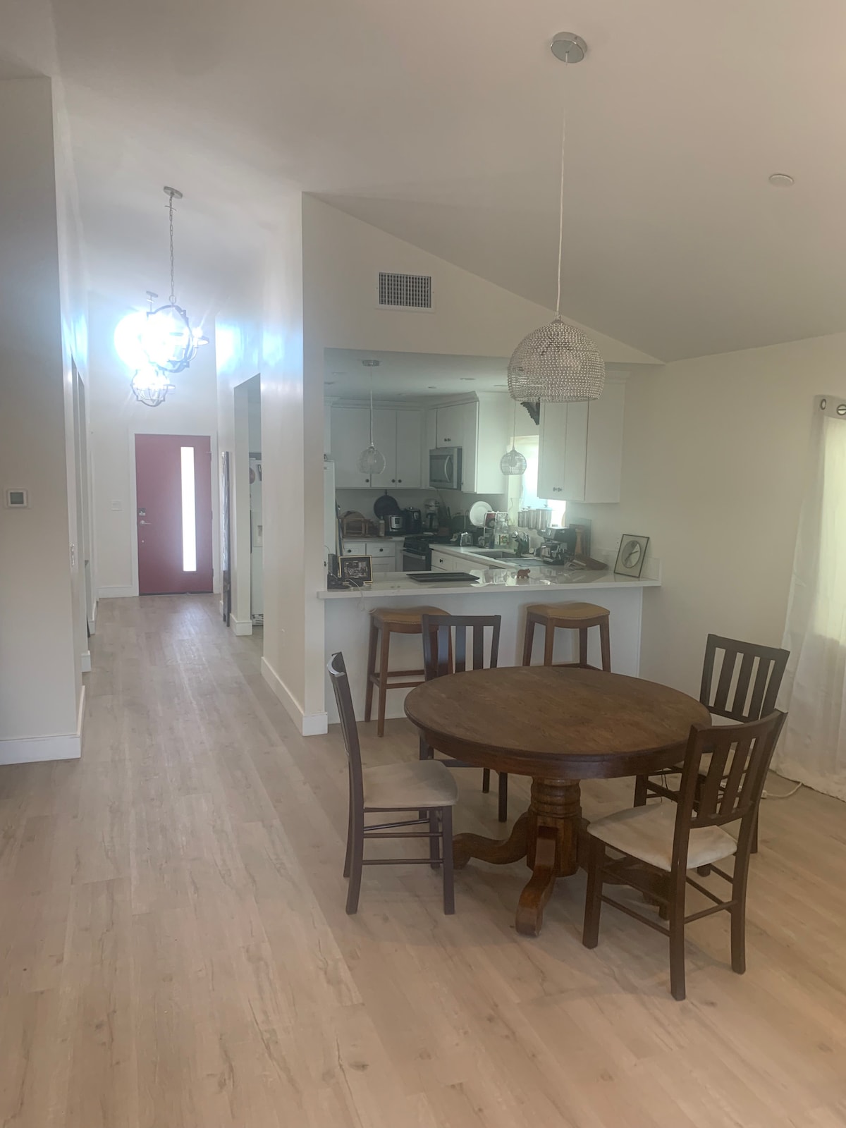 The space available is like a "mother-in-law" suite, attached to the house, but has its own, private entrance. New floors throughout as well as new bath, new mini fridge.