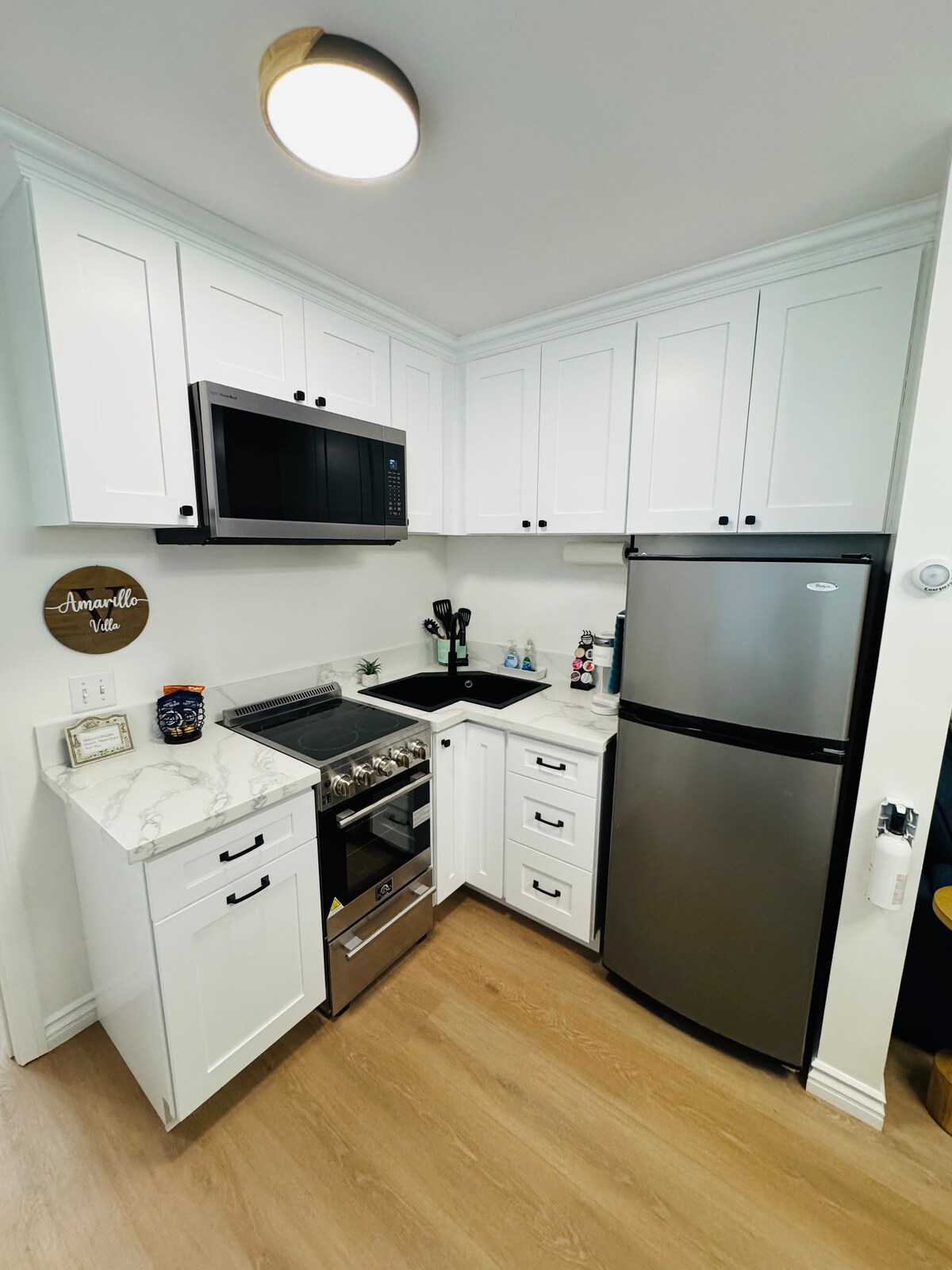 This fully remodeled Southern California Airbnb offers comfort and convenience just minutes from the 118 freeway. Inside, enjoy a full kitchen, cozy fireplace, laundry access, fast Wi-Fi, and smart TVs. The spacious bedroom features a queen bed, while the living area includes a pull-out couch, ideal for couples, small families, or business travelers. The modern bathroom includes a sleek, curb-less walk-in shower for added comfort.
