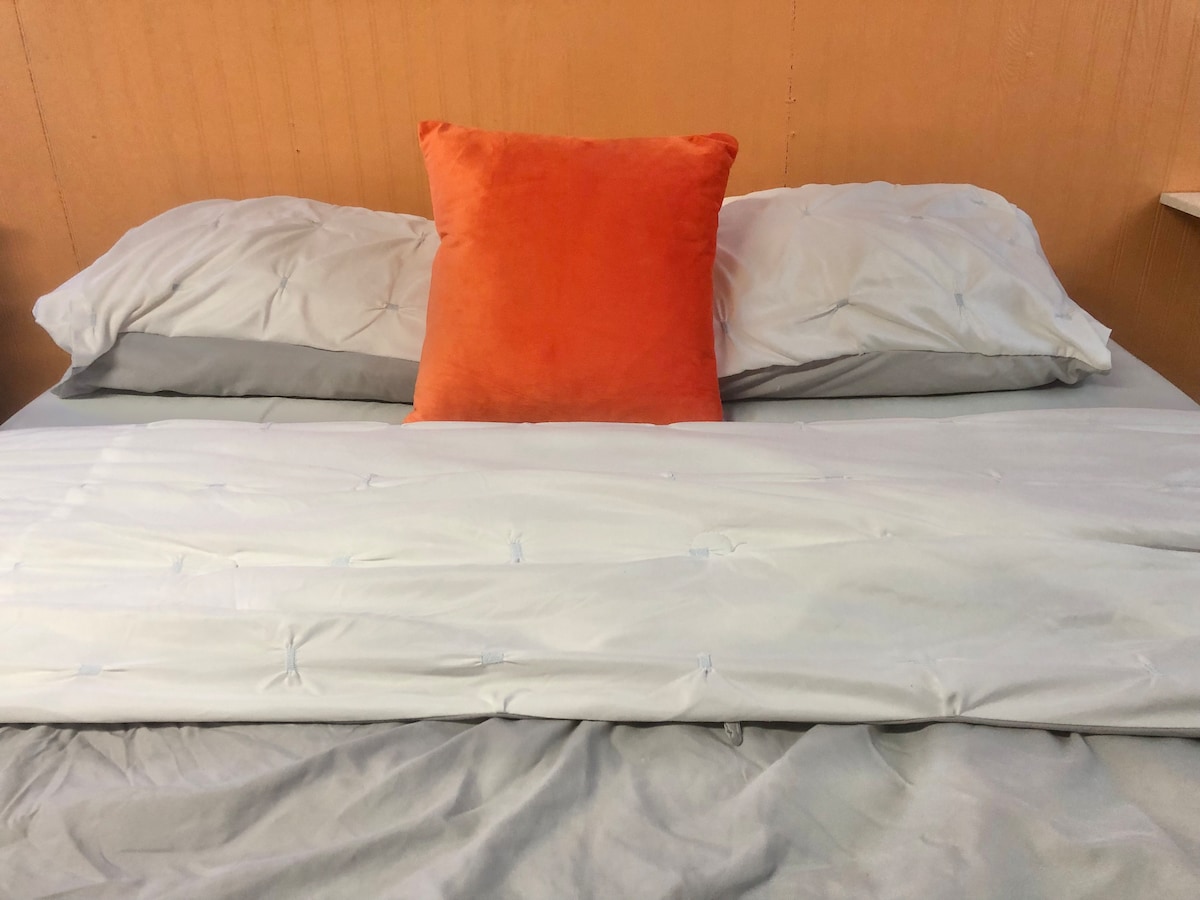 This is a large one bedroom located inside an older house that had been converted into a tri-plex. There is a pullout couch in the living room and lots of space for air mattresses (1 provided). There is shared heat throughout the building and space heaters in the unit to control the temperature to your liking. A window A/C unit and portable fan is available for cooling.
