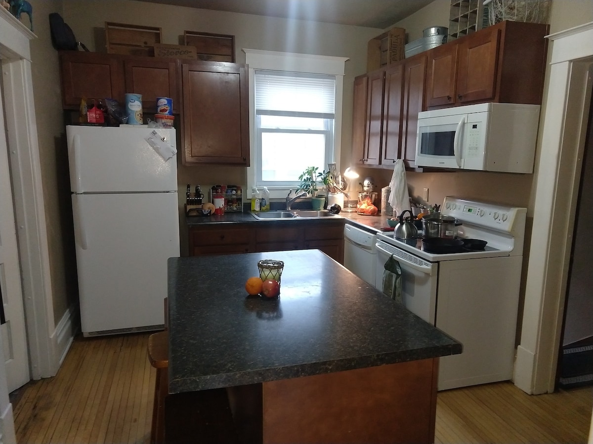 This is a shared house (myself & 1-3 guests) with living, dining room, well equipped kitchen, laundry on main floor and SWEET front porch.