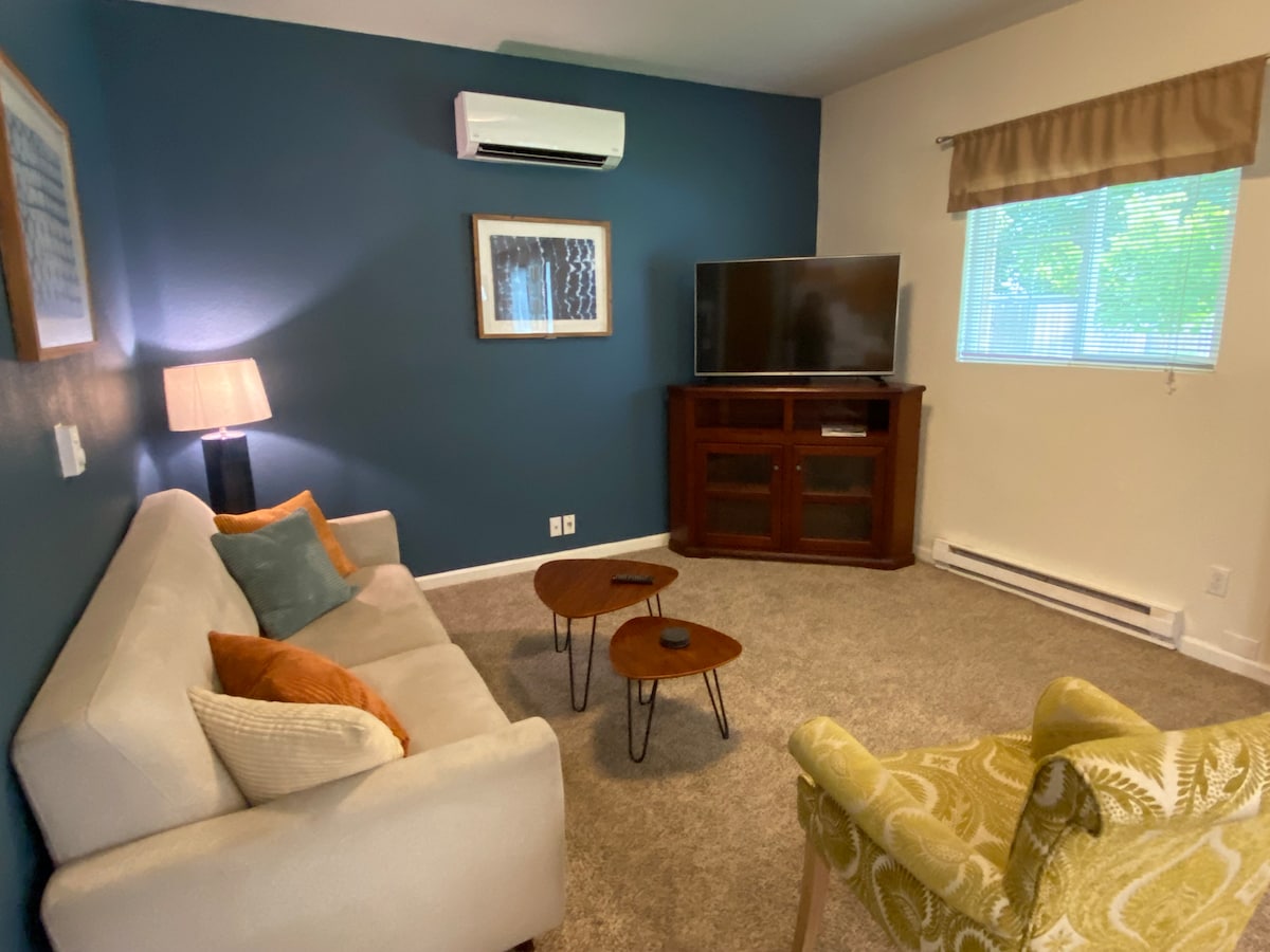 We hope you enjoy our eclectic decor which brings elements of the MCM period as well as tastes of Colorado. Everything you may need is provided, including enough personal care products, coffee, and kitchen supplies to get you started. Appliances, beds, linens, and upholstered furniture are all brand new. Brand new central air and toasty gas heat will add to your comfort.