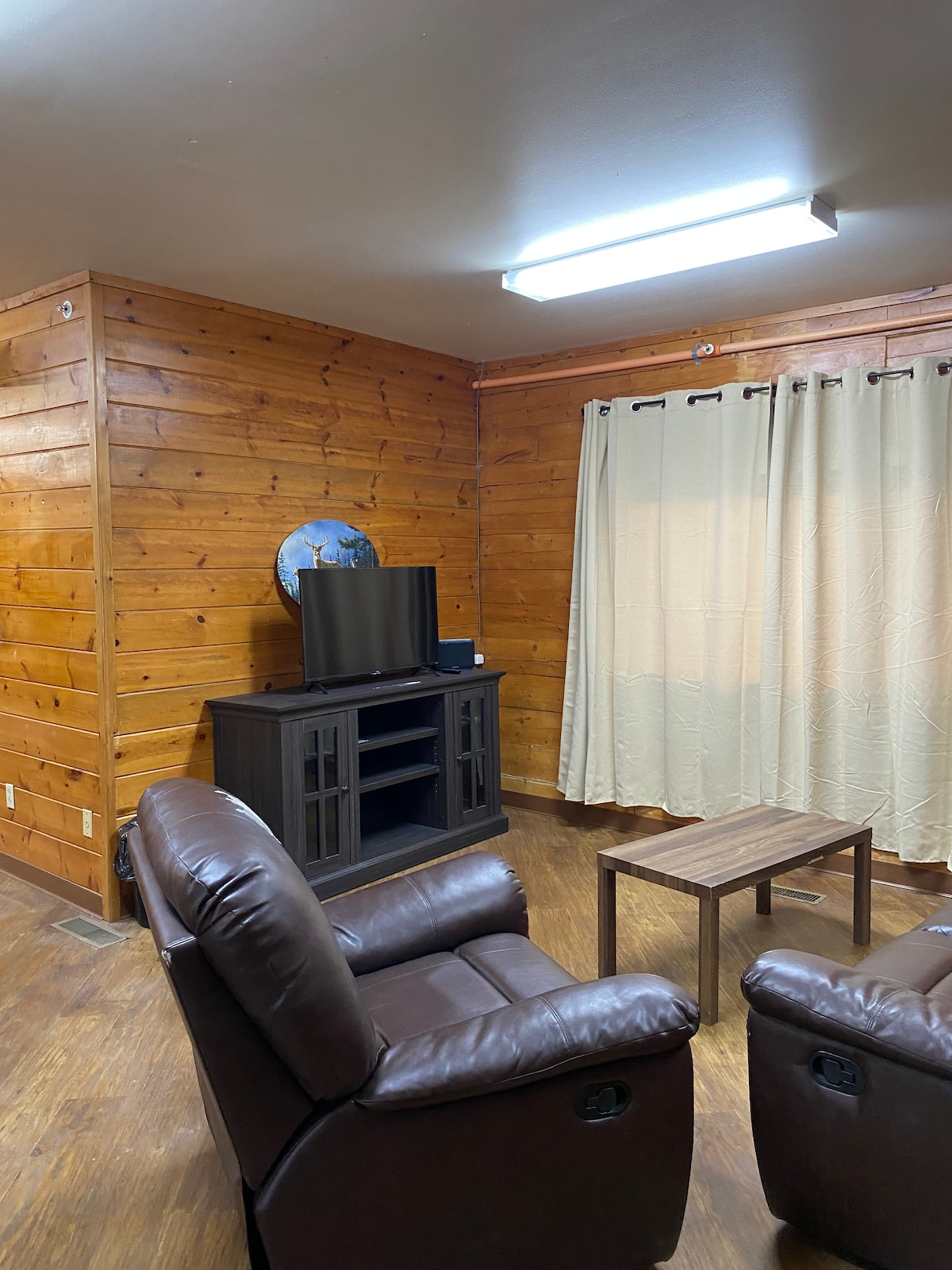 Steelhead can sleep up to six people with 2 bedrooms each with a queen bed and queen sofa bed in living room. The cabin has one bathroom with a large well lit tile shower and an on demand hot water heater which means you never run out of hot water. A complete kitchen has a refrigerator, gas range, microwave and cooking utensils for your use. The loft has an over stuffed chair and great view of living space as well as outdoors, great for reading a book or relaxing. Large windows and a wrap around deck opens the living space up to the outdoors giving this cabin a sense of bringing the outdoors inside. A Smart TV is available with access to free movies and news as well you can login using your Netflix or other On-demand services for viewing your favorite programs. FISHING ACCESS: although this property does not offer any private river access, there are two public access locations close by, Moose Meadows public docks is about 1/2 mile up the road as well as a boat launch about 200 yards from the property.