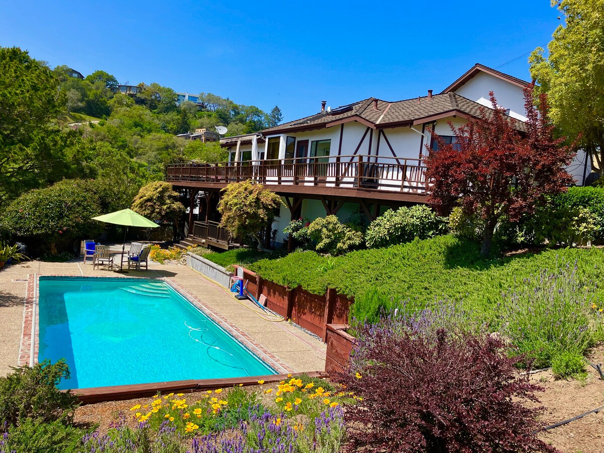 This light-filled oasis features breathtaking views, major privacy, and wonderful outdoor spaces. A stunning terrace with a round sun bed and dining table for six under the stars! A beautiful deck under the redwoods with a hammock. Open floor-plan, 2,300 sq. ft. Spanish hacienda-style décor, saltillo tile floors, and gorgeous indoor and outdoor plants create an enchanting and secluded space to relax. Feel your cares melt away as you relax in this serene, magical 3.5 acre retreat.
