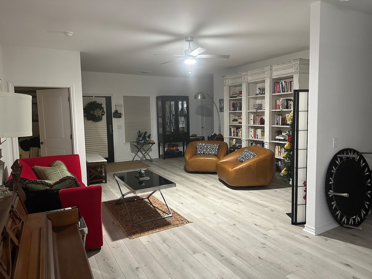 Guest have access to all common living areas and small outdoor back patio. Private room is furnished with full size bed, closet storage space, desk, chair and television. Additional private room is also included and available for relaxing, reading or watching movies.