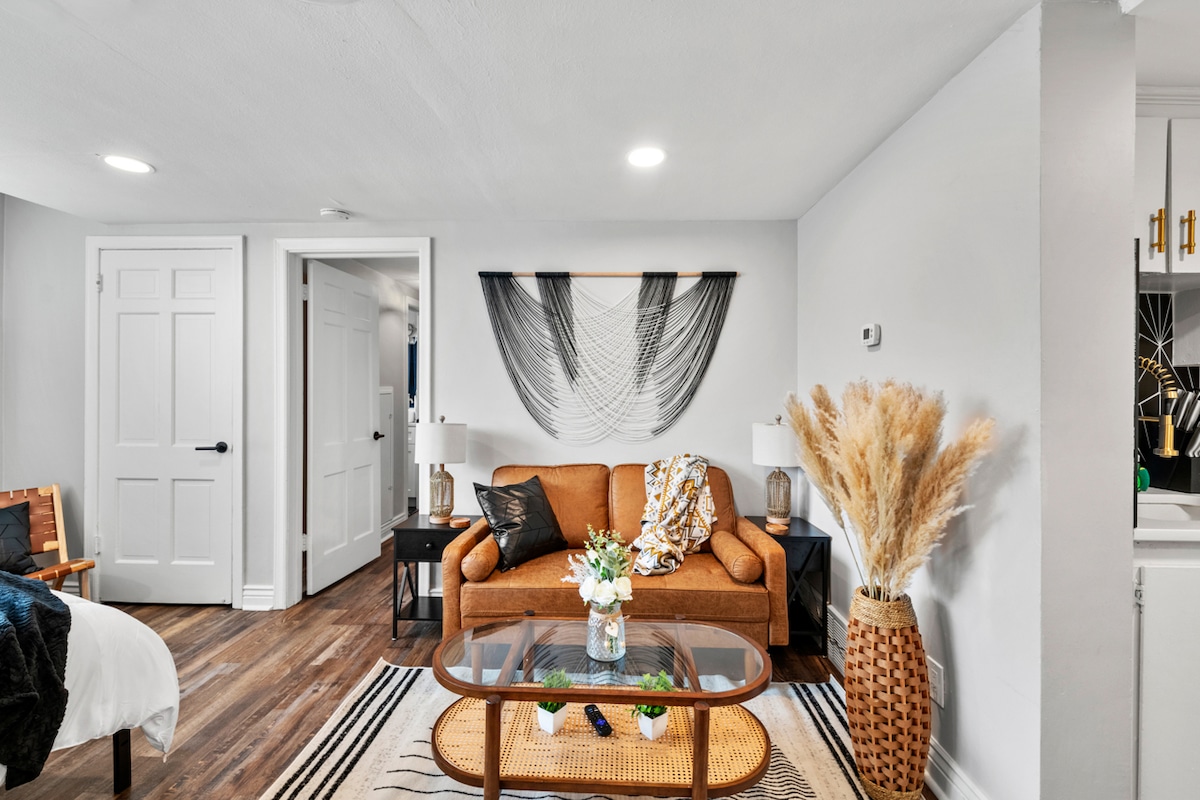 Explore the Contemporary Cozy Studio in Midtown Omaha, a unique retreat blending design and functionality for your city adventure. Featuring a luxurious king bed, fully stocked kitchen, and a living area with high-speed WiFi and smart TV, it promises comfort and connection. Enjoy complimentary coffee, in-unit laundry, and proximity to Midtown Crossings and Dodge Street. Ideal for both leisure and work, this studio offers a serene, intimate experience in the urban core.