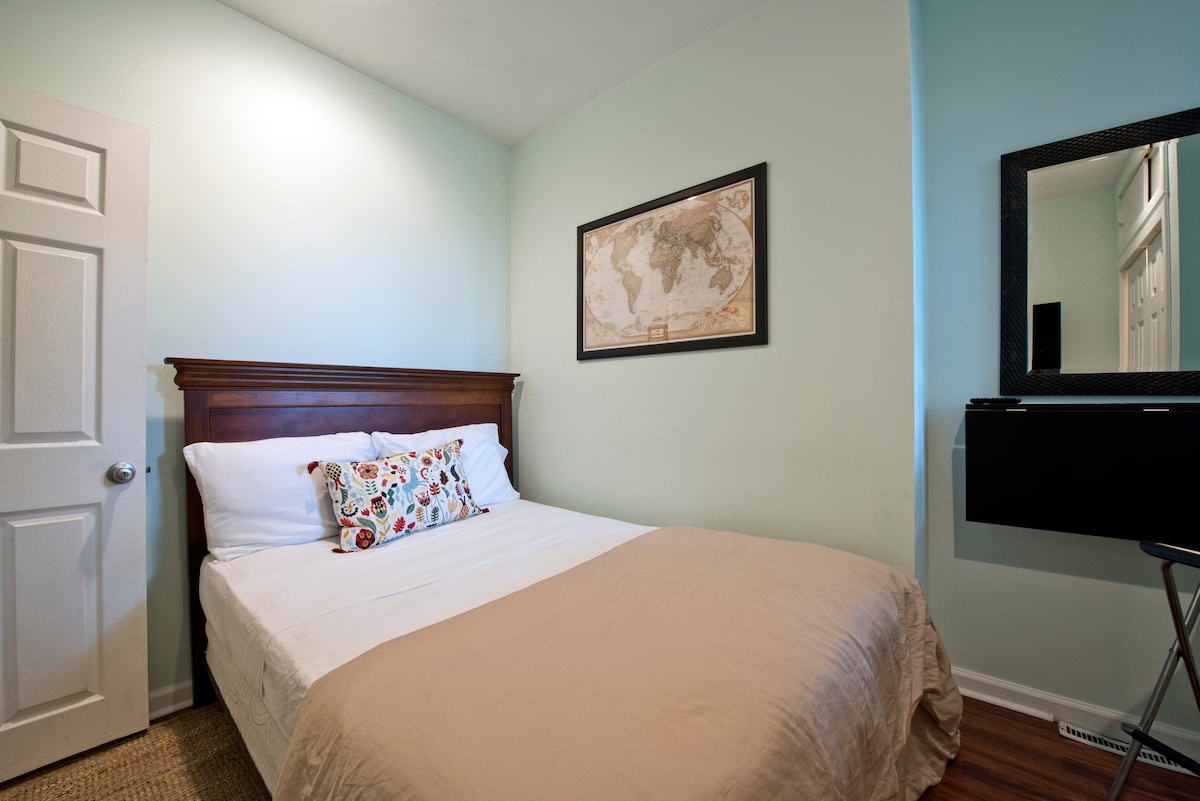 Have this brand new gut-renovated apartment with private entrance all to yourself. It offers a relaxing stay and partial city skyline view just blocks away from Center City, hospitals, and universities. Fully equipped from head to toe along with central A/C, ceiling fans, and lots of cheerful sunlight. Super clean and charming.