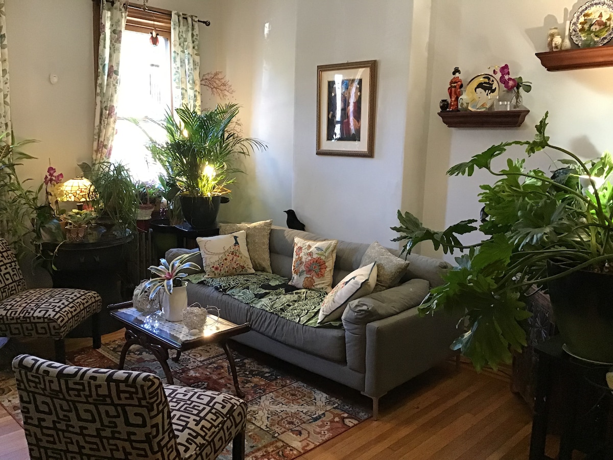 Ground Floor Unit, Newly Architect-Renovated Studio, Full Kitchen, Closet, New and Private/ Attached Bathroom, Vintage Fireplace, Washer-Dryer in Basement (All new, no coins needed). 2Hour Street Parking, High Speed Wifi. Tree Lined Quiet Neighborhood.