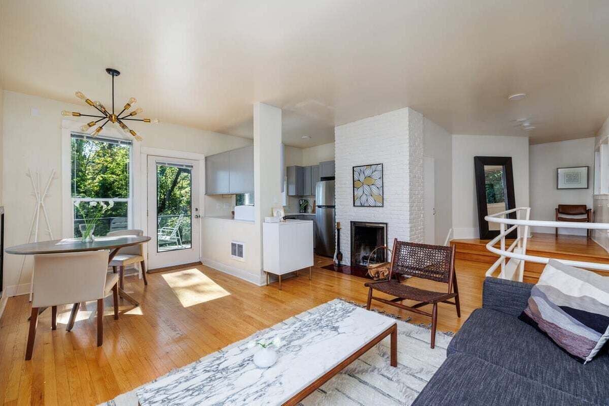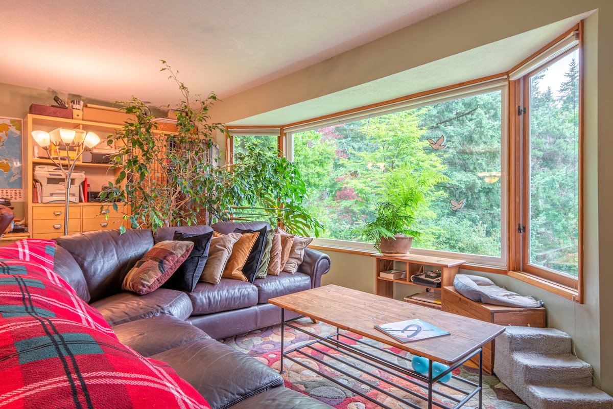 Close to city...but not too close. Relax in the comfort of a fully renovated "rear windows" apartment, overlooking towering cedars and Douglas firs. Birdwatching, urban hiking and easy access in all directions. Close to highest viewpoint in Portland. Kick back and relax in this calm, stylish space. During colder months, enjoy remote controlled gas fireplace while you read or binge watch your favorite shows in the living room.