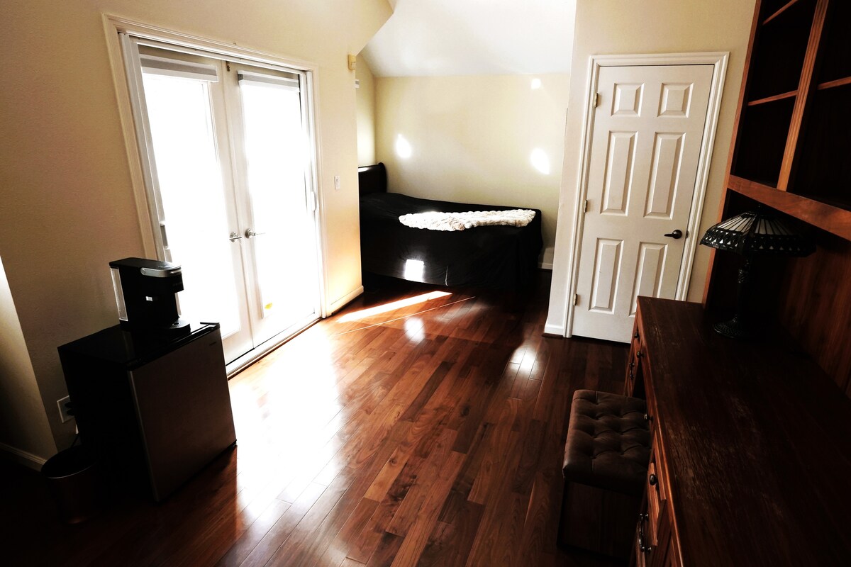 Beautiful downtown studio in residential home setting.Immediately off Portland State University campus.Walk to all downtown venues:Art Museum, Symphony, Theatre, Restaurants, Farmer’s Market.Lots of pluses:Your own outdoor deck, full kitchen, large windows, excellent lighting, gas fireplace, washer/dryer.It’s in an isolated pocket of turn-of-the-century homes on the lower edge of Portland’s South West Hills Neighborhood, just off Broadway and off the south end of the Park Blocks. You are guaranteed to start as a guest, but you will leave as a friend.