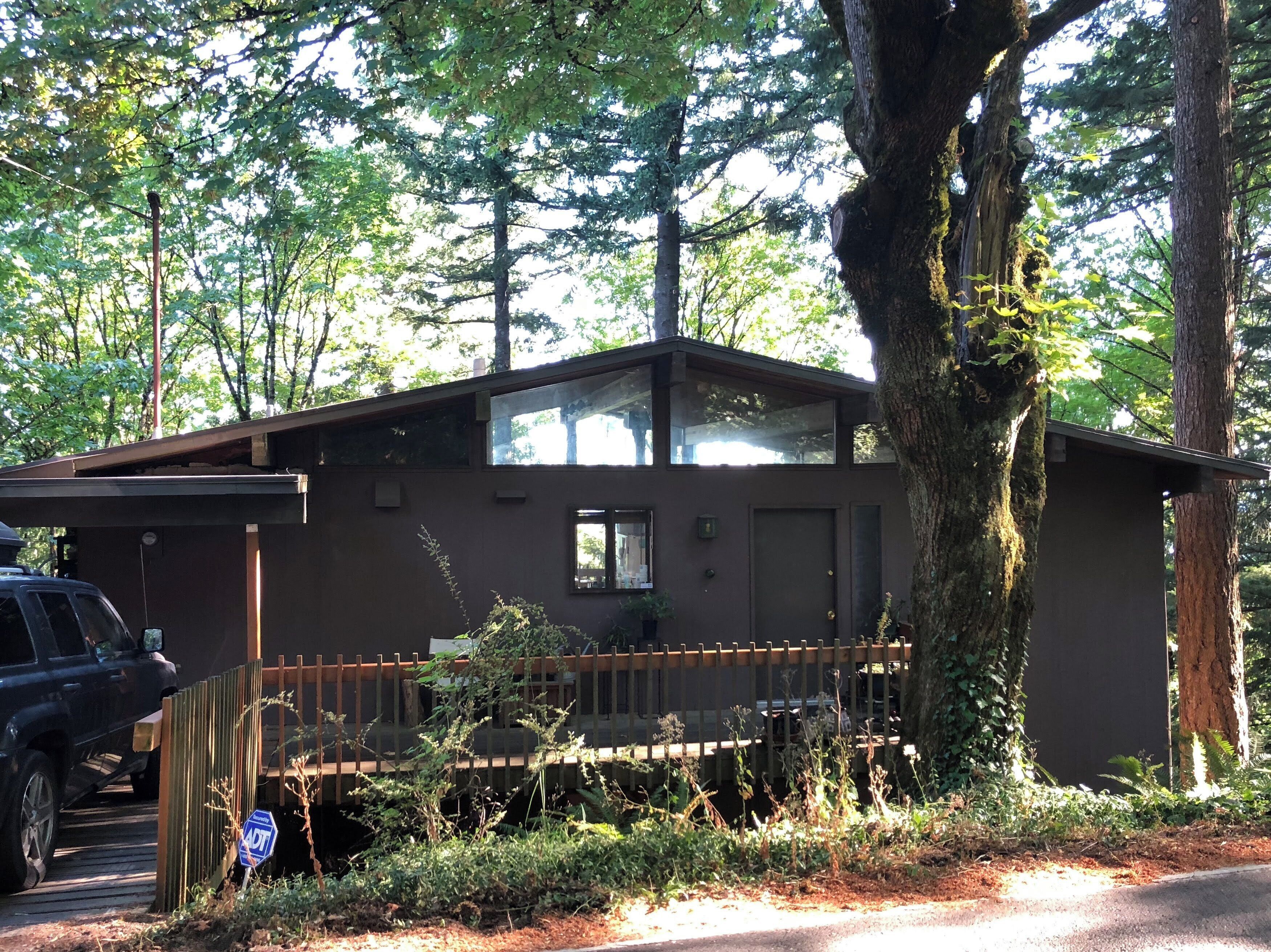 1970s contemporary on the edge of a wooded mountain ravine 10 minutes from downtown Portland.