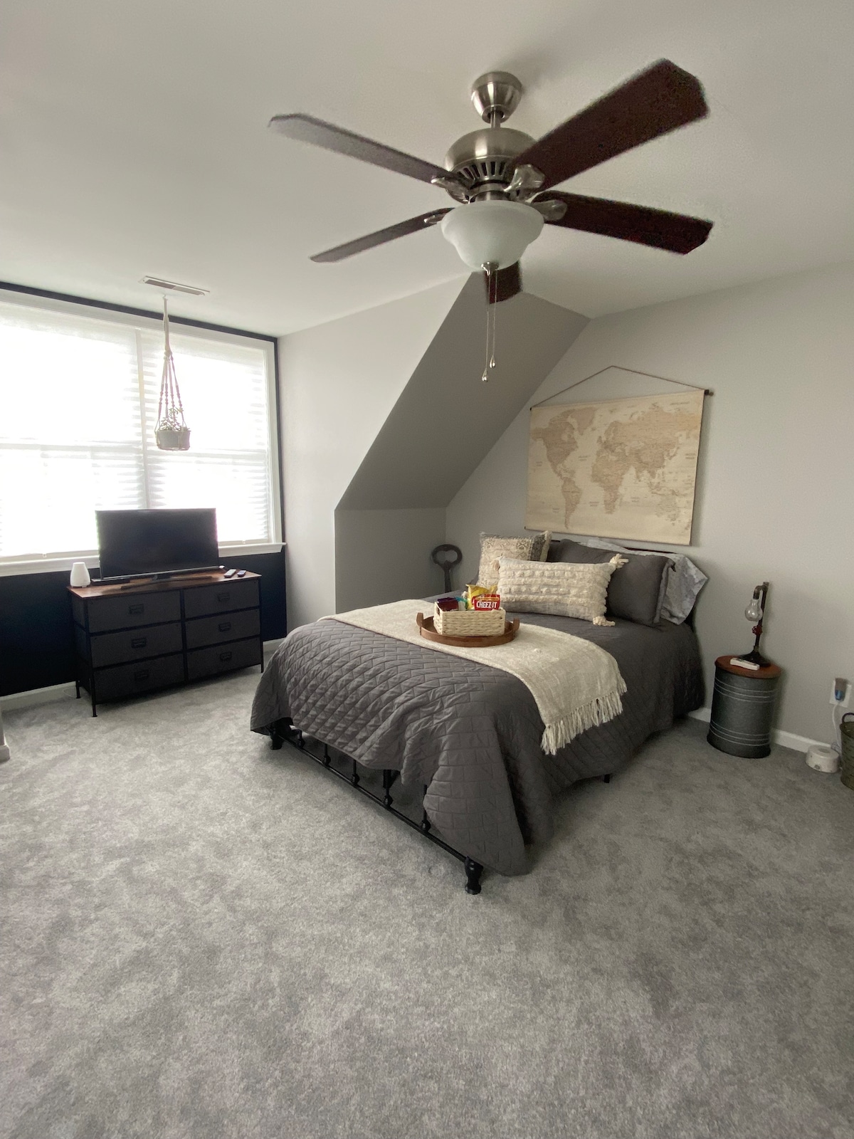 This is a single level home. As you walk in, you will be welcomed into the living room which flows into the dining room and kitchen. We have a smart T.V. in the living room where guests can log into any of their streaming services. The kitchen is supplied with all basic cookware to stay in and enjoy a meal at home. Two of the guest rooms are in a hallway off of the living room, with a guest bathroom between them. One of the guest rooms has a queen bed and a smart T.V. The other guest room can sleep three people with a bunk bed (full on the bottom and single on the top). The primary suite is off of the kitchen. It is fitted with a comfortable king bed, smart T.V., ensuite bathroom, and walk-in closet. We do allow dogs under 30lbs at the property. The backyard is not fully fenced, and we do ask that you keep pets off of the furniture. But we are happy to provide a space for people to travel with their dogs.