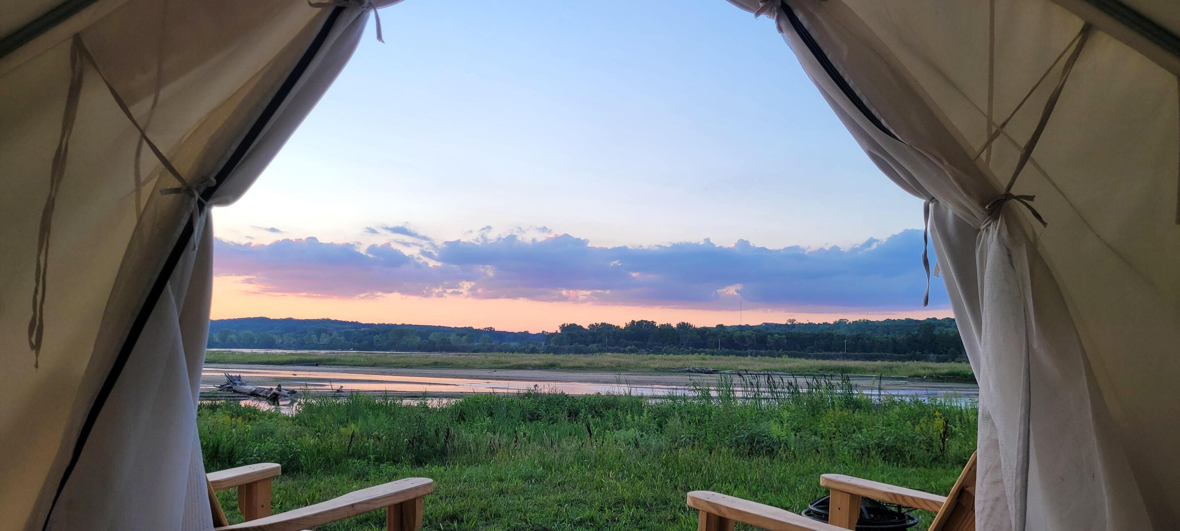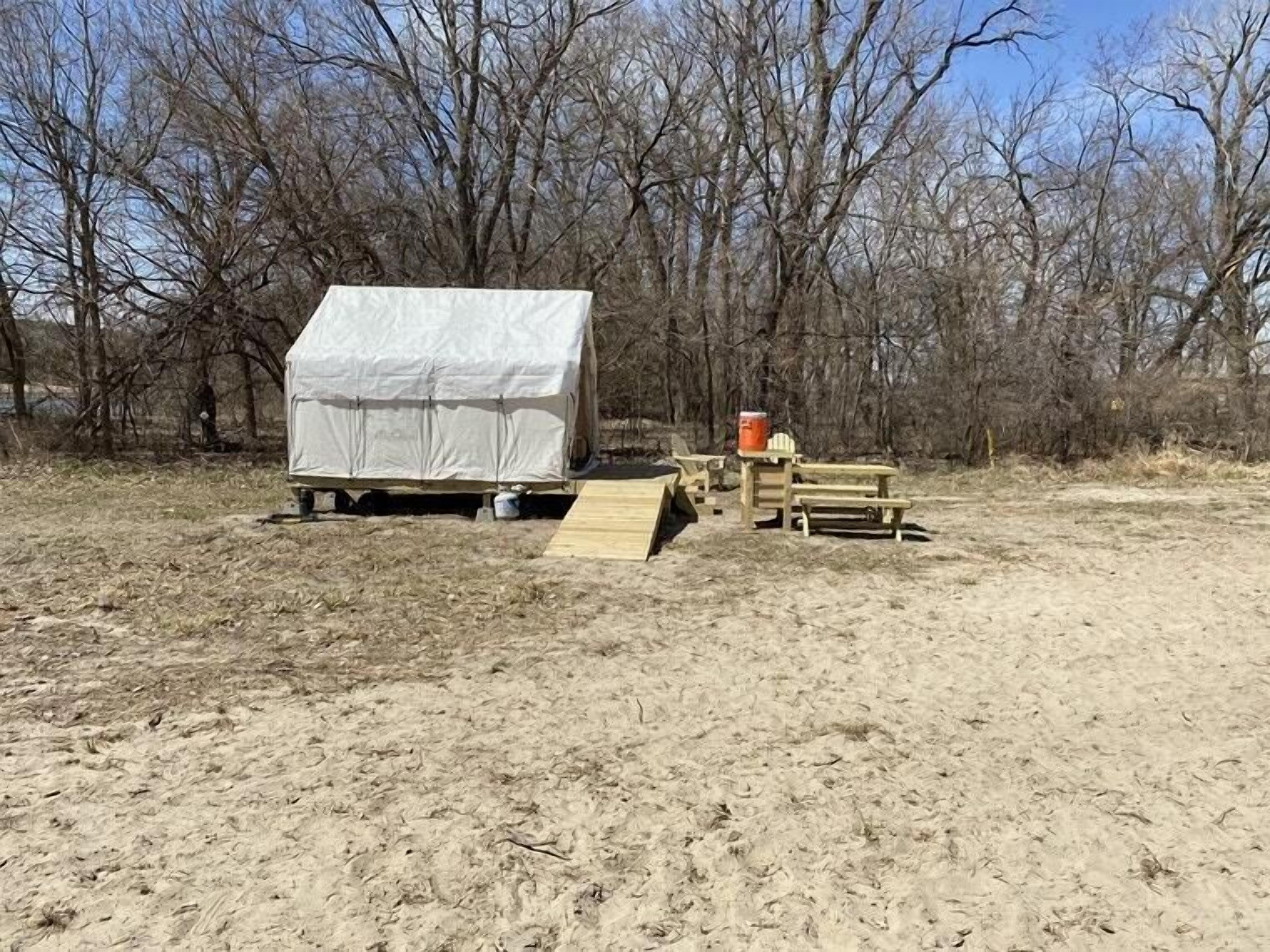 Riverview D is located approximately 1 mile from the park entrance and has a view of the Platte River. Your partially shaded campsite is about a 2-minute hike in from the parking spot. The site features a spacious 10 x 12 platform tent with a queen bed as well as a pop-up tent that can accommodate 4 additional campers. A picnic table, firepit and two Adirondack chairs are also included. There is a Tentrr Loo (camping potty) at your campsite for convenience. Campers will also be able to access modern bathhouses for showers and restrooms at the park but these facilities are some distance from the tent. If you're looking to camp with another couple, family or group consider booking Riverview C and Riverview D.