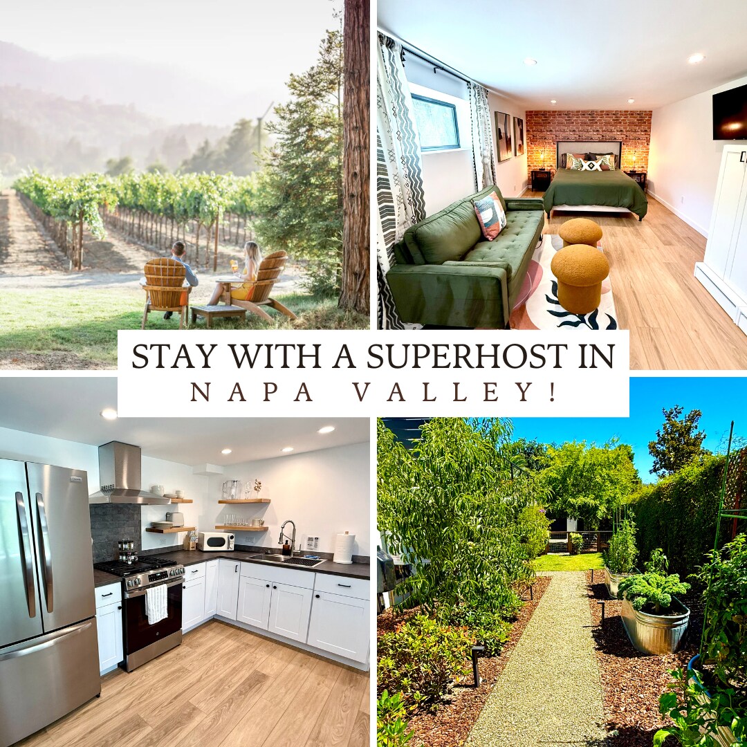 - "Amazing stay! Had a group of 6 people and we were all comfortable in the house. The location is great and walking distance to most everything in St. Helena. Definitely would stay again" - "N/A" - "The location in St Helena is perfect. Walk to restaurants and downtown. After staying in various locations in Napa the past 20 years, I can say- St Helena is the best. Jill’s home is perfect. Very well equipped, very clean and comfortable! It was the perfect launching spot for the Napa to Sonoma half we ran and even better for hitting the wineries. We will back!"