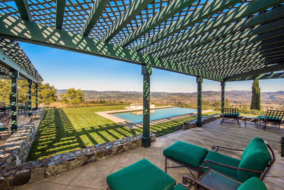 This exquisite Tuscan home with modern amenities and “smart home” features is just minutes to world class wineries and restaurants. Expansive vineyard views from every room, this home features manicured gardens, Olive grove, Redwoods with a relaxing hammock, Mediterranean pool (pool towels provided) and grounds studded with Italian Cypress and fruit trees is an absolute getaway experience.