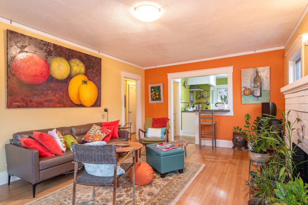 This space has a great Portland vibe. The cute + cozy "chateau" is outfitted with custom furniture, original artwork by Portland artists, and handmade ceramic dishes -- just a few things that make this space unique. Comfortable bedding and a full kitchen will make you feel right at home during your visit.