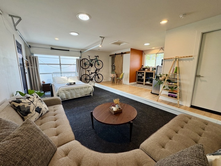 You will have access the private patio, lower entrance and upstairs studio. You are welcome to use the shared laundry room with the downstairs and tiny home tenant.