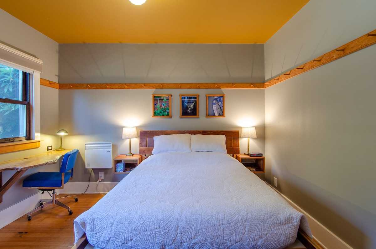 Newly built basement suite in a historic 1910 Craftsman Four Square style home. The basement suite is close to 1000 square feet with a large, open kitchen and living area. The bathroom is a 3/4 bath with a full washer/dryer. The bedroom has 1 queen bed. The space is perfect for 2 adults or a family of up to 4. As a family ourselves we have all the baby/toddler gear and are happy to provide you with anything you might need on your travels. Please keep in mind this suite is in the basement of our family home. You will hear noise from our home above. We try to be considerate of our guests but you will hear sounds of normal living - footsteps, cabinet doors, etc. This has not been a problem for the vast majority of our guests, but if you feel you are highly sensitive to noise it could be bothersome for you.