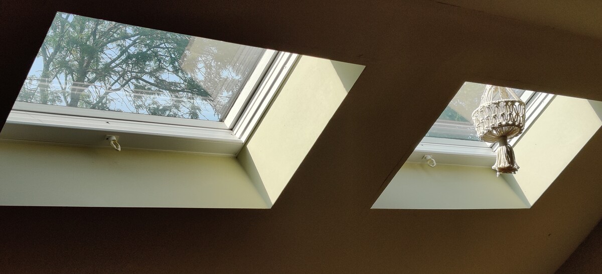 we share our front rooms, backyard, and basement laundry room. you are nestled very safely in our attic. you walk from the entry to the second floor landing to a lockable door. we have a sound/ privacy barrier so that our two family bedrooms are private. you will see us often in the kitchen if you need to use the rear entrance. I try not to talk your ear off, but I will usually say hi. my husband is home less frequently and he might tell you a silly dad joke, but he tends to keep quiet.