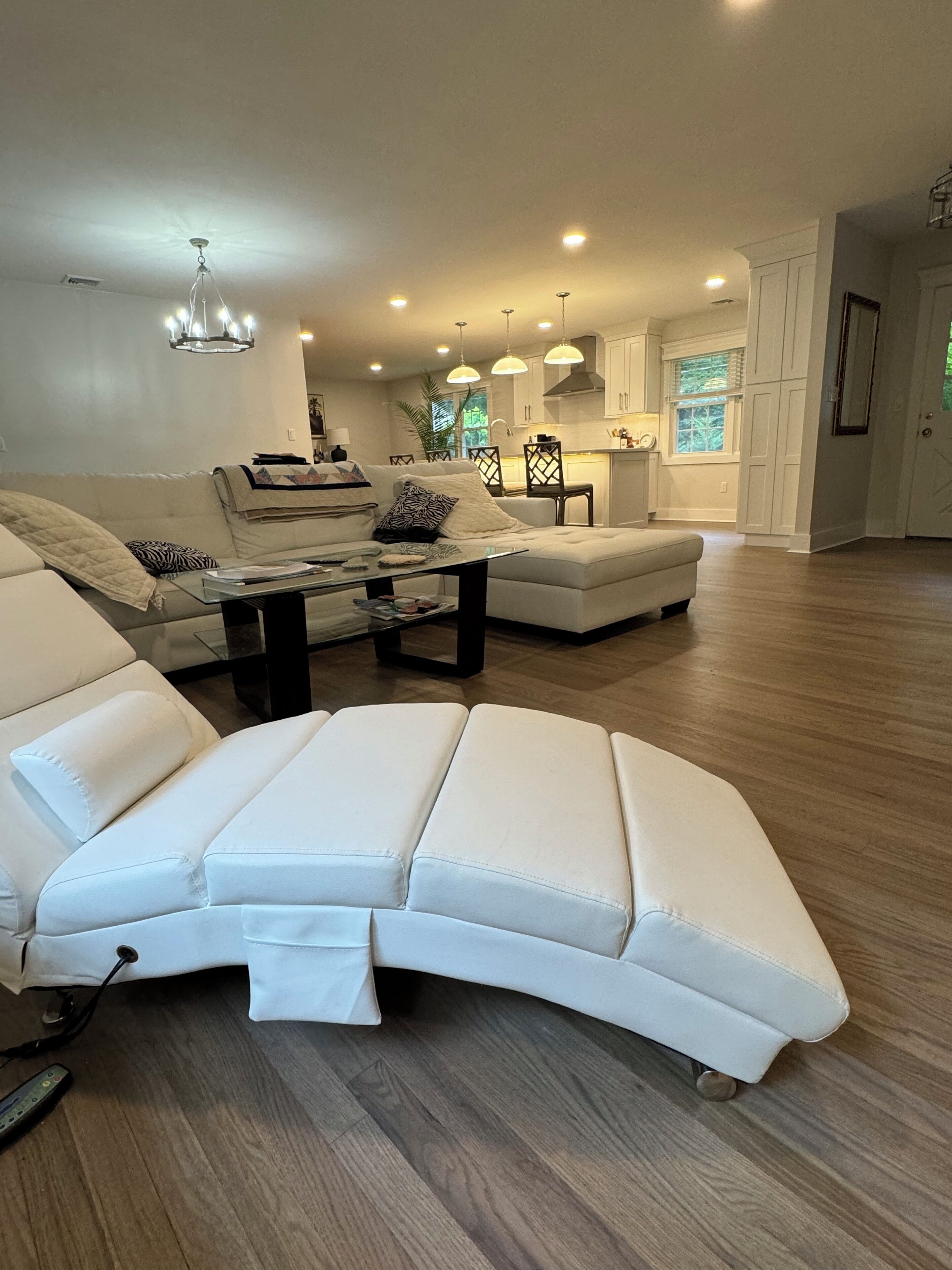 INDOOR LIVING: Smart TVs, office space w/ computer monitor, dining table, reclining chairs