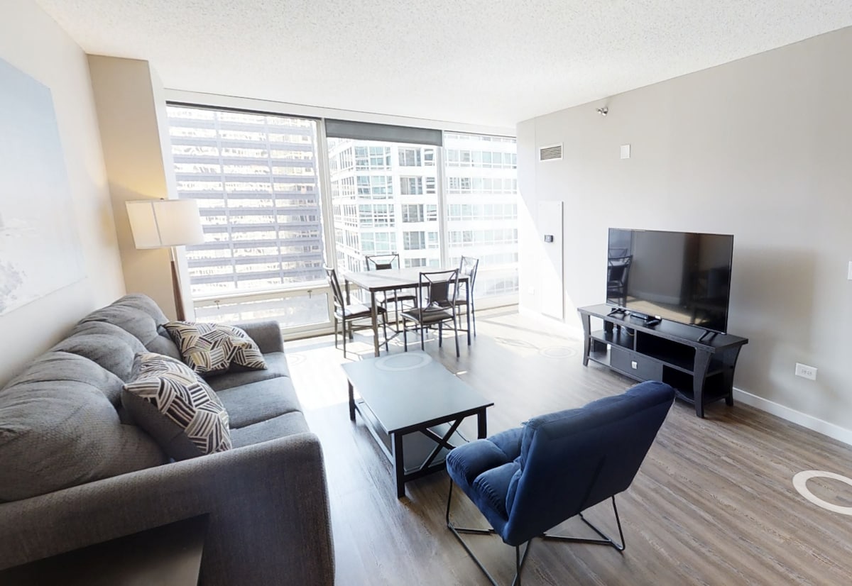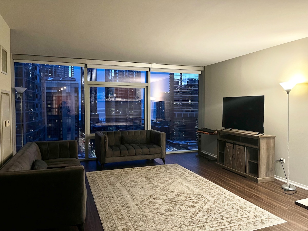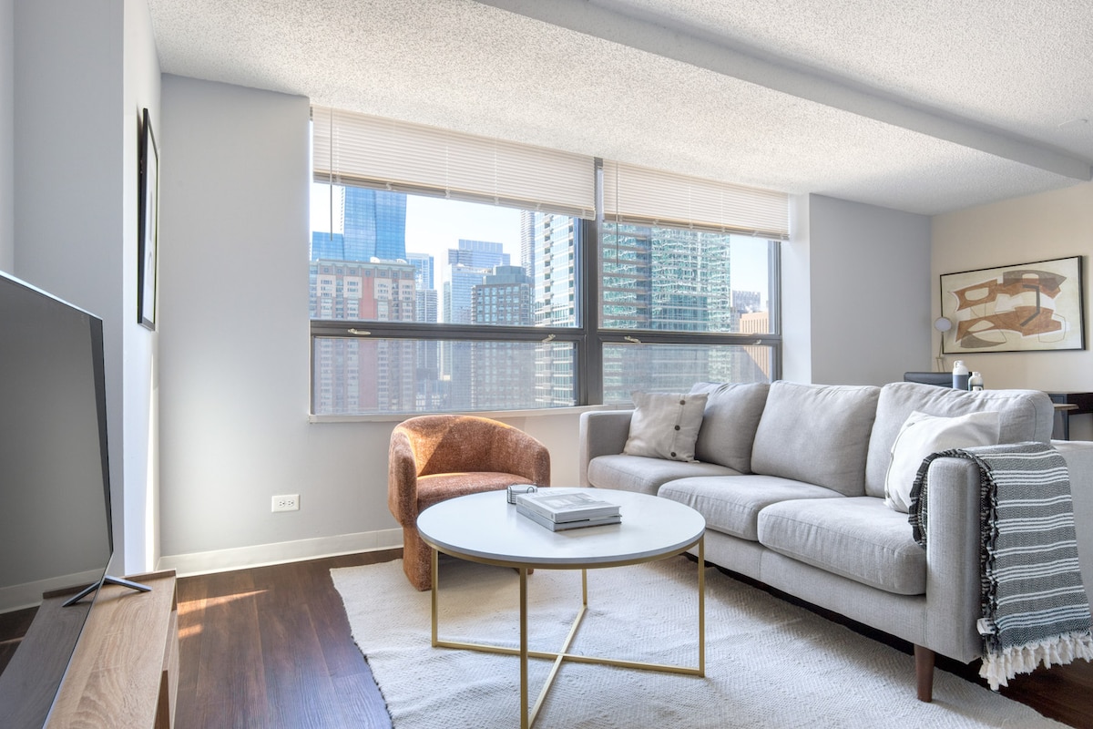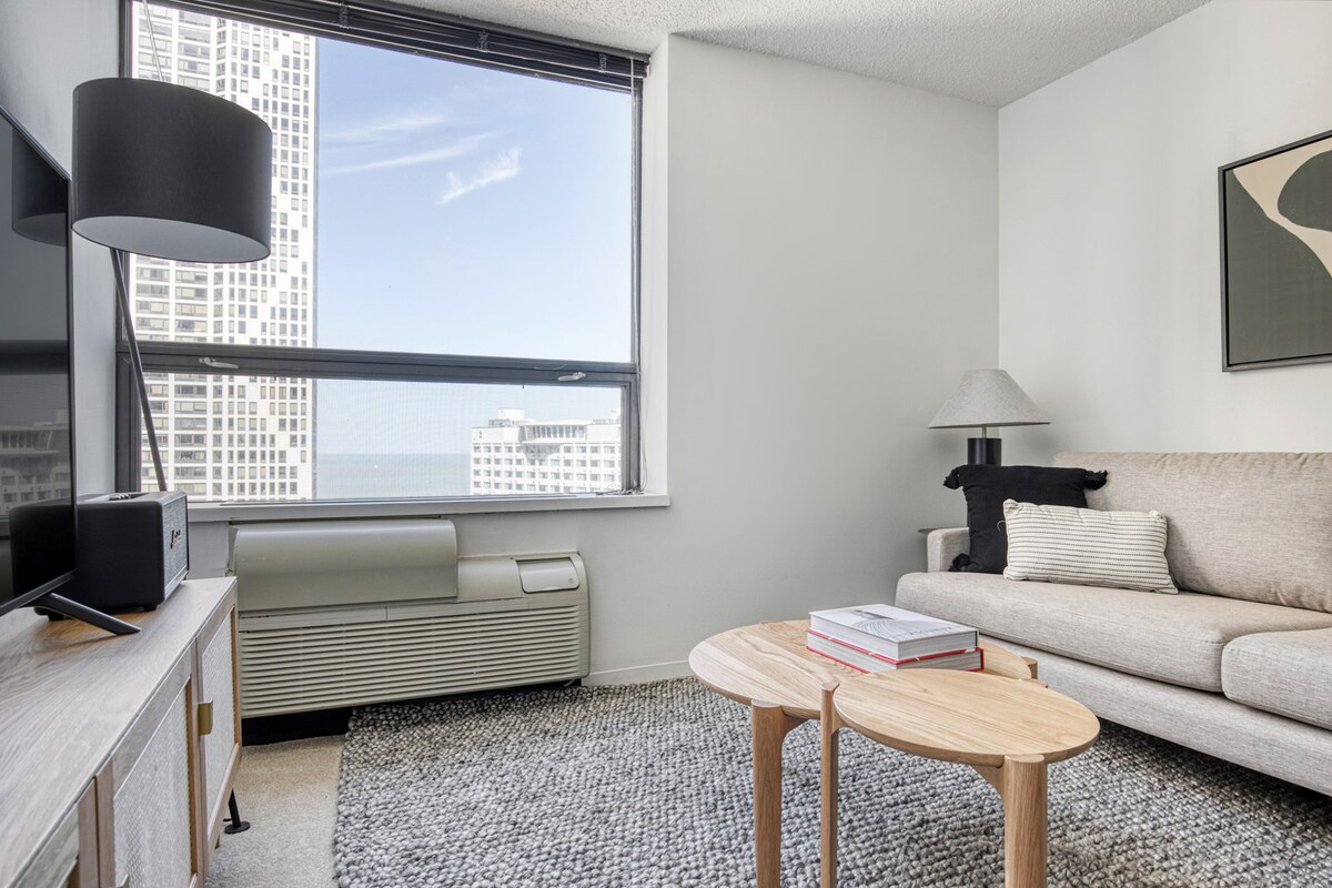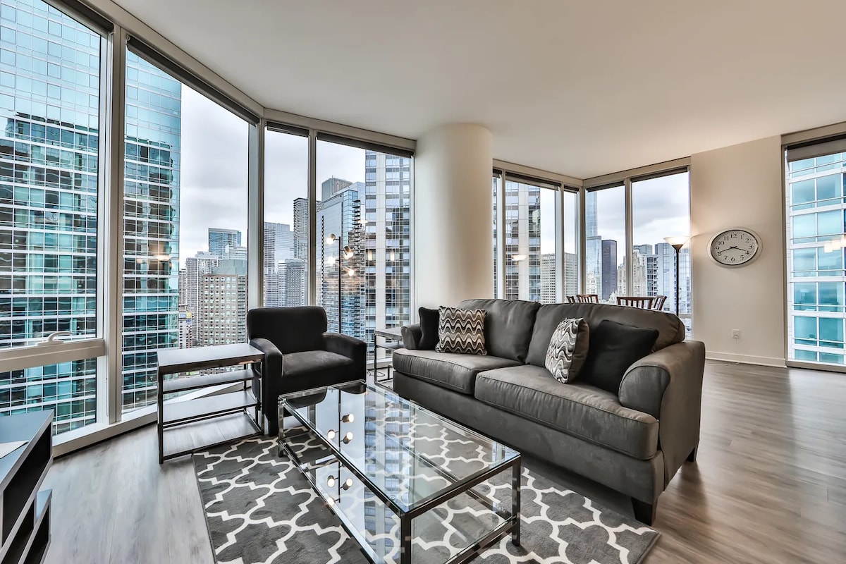 The apartment’s location is amazing. Steps to the lake, Magnificent Mile, Navy Pier, Riverwalk! Plus, bars, shops, restaurants and easy access to Michigan Ave. You will be super connected to all this incredible city has to offer.