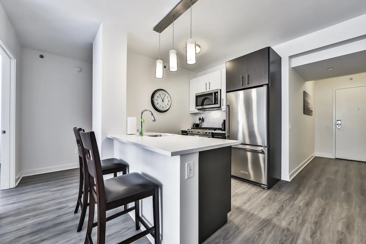 This fully furnished 2-bedroom suite near Shirley Ryan offers a king bed, two beds, and all the comforts of home. Featuring an in-unit washer/dryer, plus linens, housewares, and electronics, it provides everything you need for a convenient and comfortable stay. Ideal for those seeking a home away from home, this suite offers modern living in a prime location.