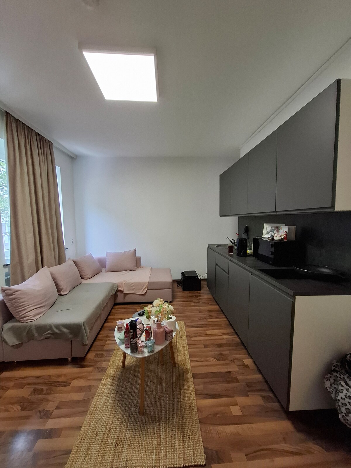 The renovated apartment has 32 square meters and has enough space for two persons. The freshly designed interior design creates a warm and welcoming atmosphere where you will immediately feel at home. Especially the completely new bathroom makes for a pleasant living experience and is equipped with modern amenities