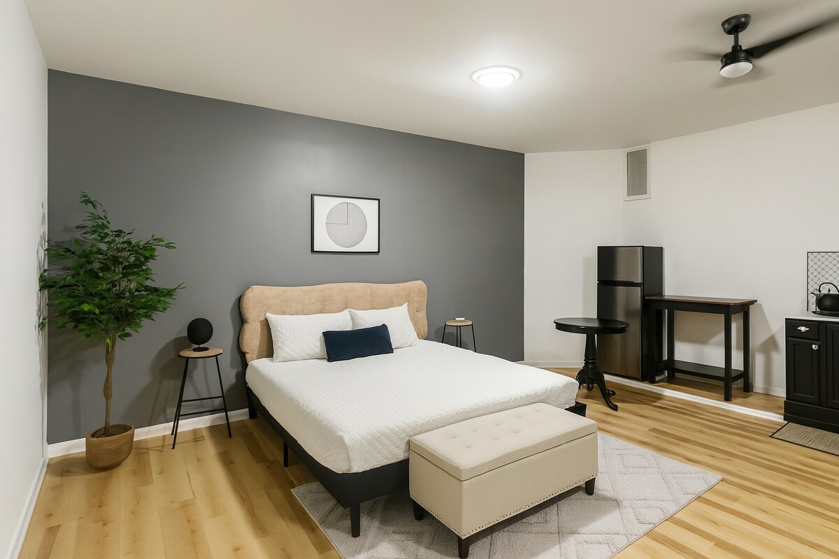 🛏️ 1 Master Bedroom: King- sized bed with luxurious 100% cotton sheets, private ensuite bathroom/shower, working station, large walk in closet and plenty of storage.