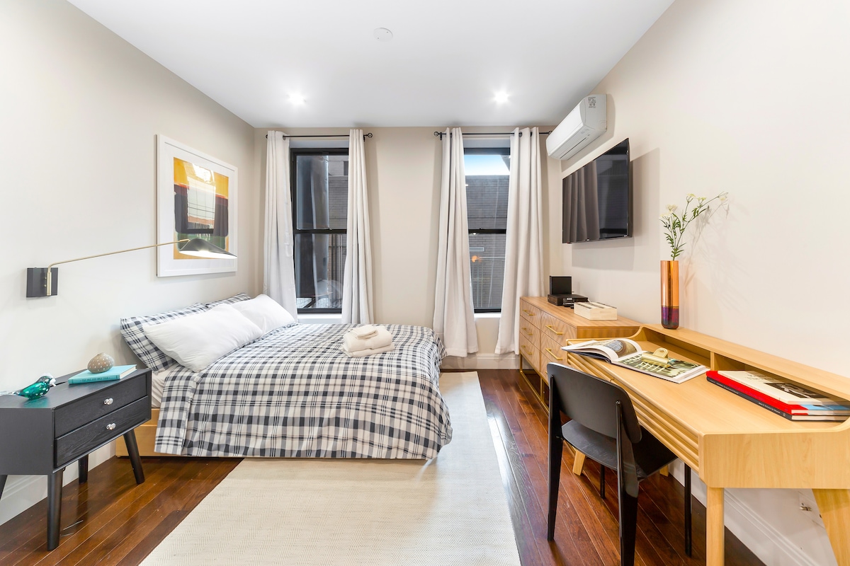 Despite being near bustling Midtown, this apartment is off the beaten path on a quieter and more private street. It's an apart-hotel, so might not have that homey touch but it does have a 37th floor gym, penthouse lounge and posh roof terrace with spectacular city views. A fab spot to park during your time in the city.