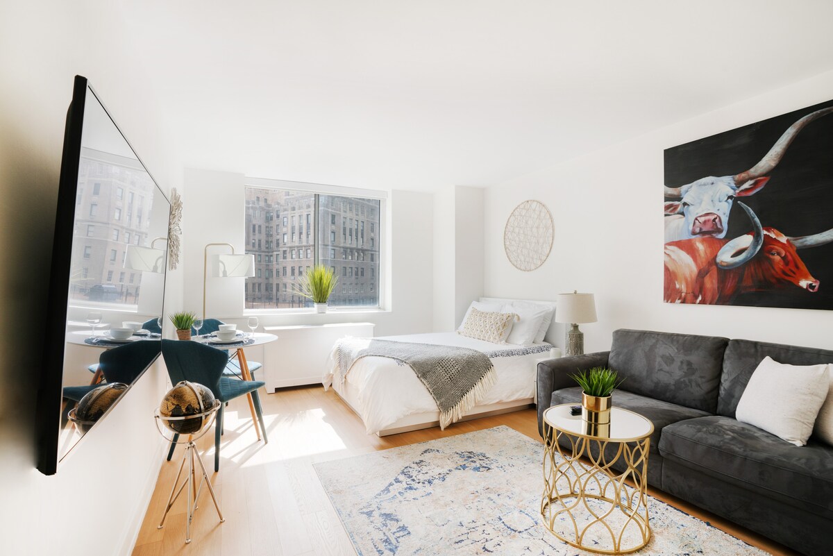 Experience the ultimate city escape in this beautifully appointed apartment, perfectly situated in a prime Midtown location. Just steps from the subway, Central Park, and world-class shopping at Bloomingdale’s, this is your ideal base to explore everything New York City has to offer. Relax in a cozy, thoughtfully designed space equipped with all the comforts of home. Enjoy modern amenities like air conditioning and heating for year-round comfort, shampoo, body wash, and essentials to make your stay hassle-free, and a steamer, bed linens, towels, and hangers for a polished and stress-free visit. The fully equipped kitchen comes with cooking basics, dishes, and silverware for those who enjoy preparing meals, while reliable hot water ensures you start or end your day refreshed. This apartment offers a perfect blend of convenience and comfort. Whether you're here for a weekend getaway, a business trip, or an extended stay, you’ll be steps away from the city's most iconic landmarks and vibrant culture. Book your stay now and make unforgettable memories in the heart of NYC!