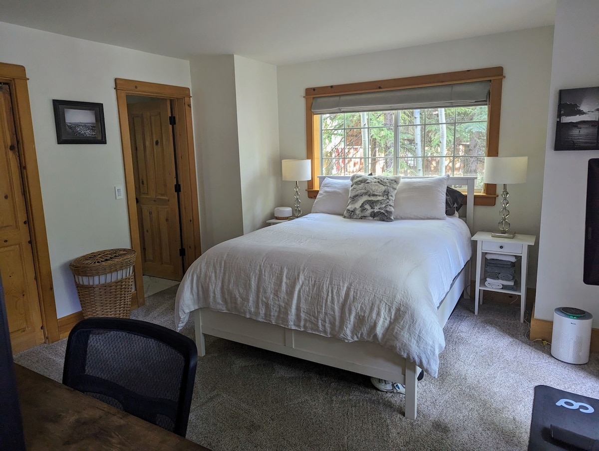 Just up the hill from downtown Tahoe City is your small Adventure Hub! This tiny cabin offers an entry room and sunny kitchen/living space with a garden window and skylight. Equipped with a queen bed and comfy couch there is plenty of room to relax after a big day in Tahoe. During the summer enjoy meals or relaxing outside on your private deck with shade garden. During the winter you can cross country ski behind the house (conditions permitting). Only 8 miles from (Palisades) Alpine and Squaw.