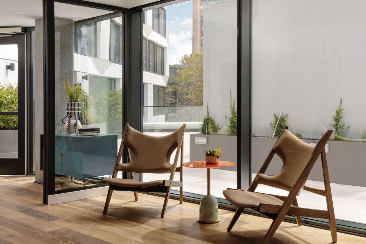 - Abundant natural light through large floor-to-ceiling windows.
