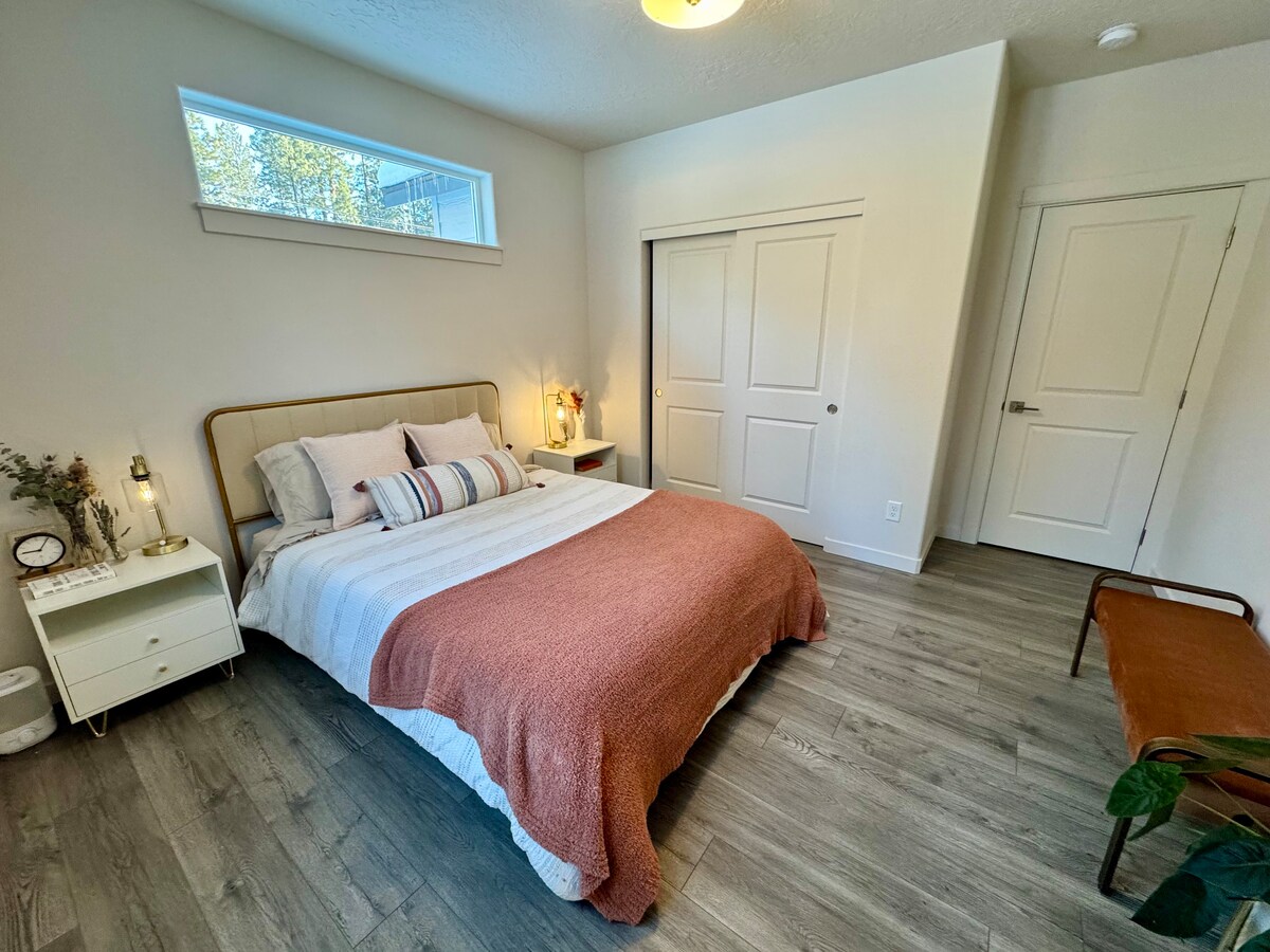 Forget your worries in this spacious and serene space. Close to Sunriver with access to the Deschutes River and BLM land with ample walking trails. This is a room in our home with a private bathroom. We have a dog and cats that live in the shared spaces, but your room will be animal-free (though the cats would love to cuddle if you're up for that!).
