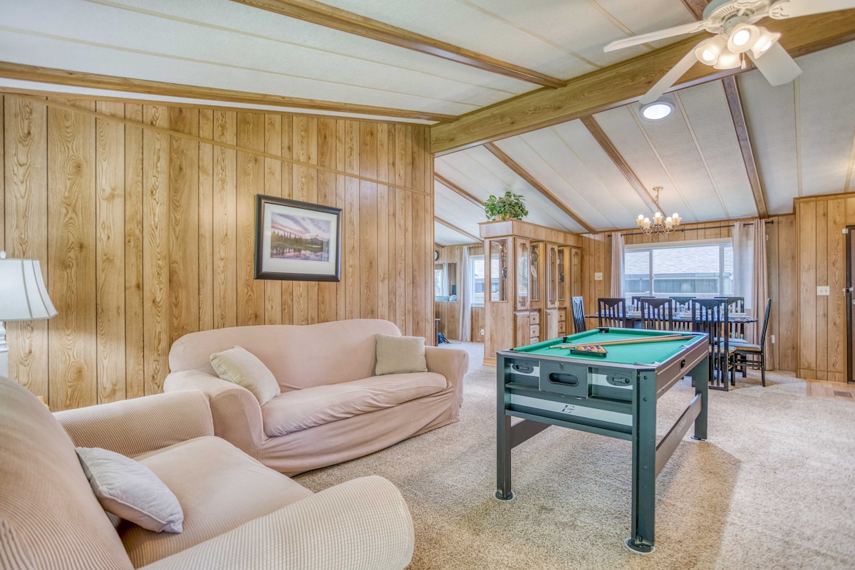 With a variety of activities nearby, from horseback riding to fly fishing, you'll never run out of things to do during your stay. Discover the wonders of the Sunriver Nature Center, bike the scenic Deschutes River Trail, or tee off at on of the many public golf courses in Central Oregon. After a day of exploring, unwind on the deck, roast marshmallows around the firepit, or challenge your travel companions to a friendly game of ping-pong or pool.