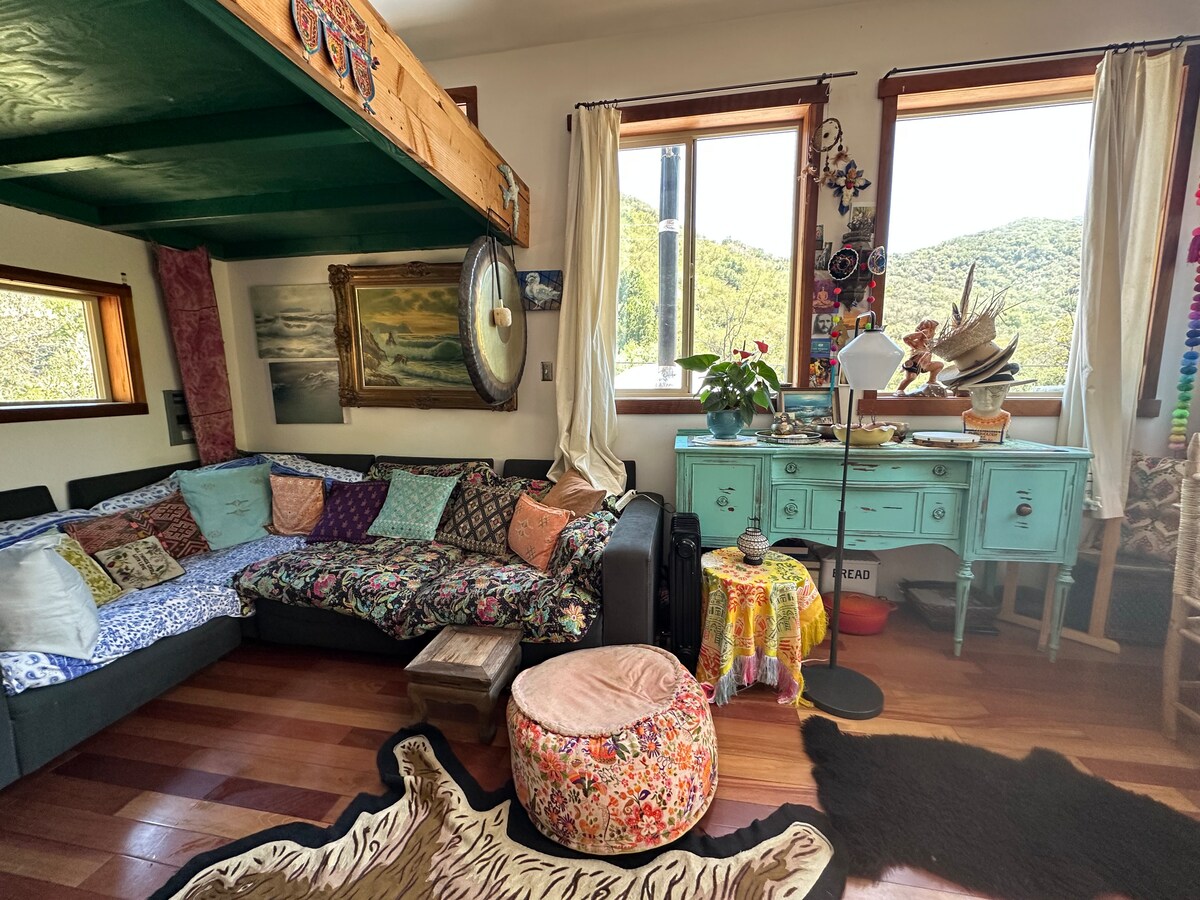 Listen to the birds and watch wildlife hidden away in the sleepy hills of Topanga. An easy drive from the city, this bijou duplex pays homage to Gypset style and boasts rural canyon views, a yoga platform, private entry, and off-street parking.