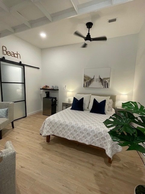 The space is similar to a large hotel room with sleeping and entertainment space. Includes a large en-suite bathroom. The space is best suited for two adults.